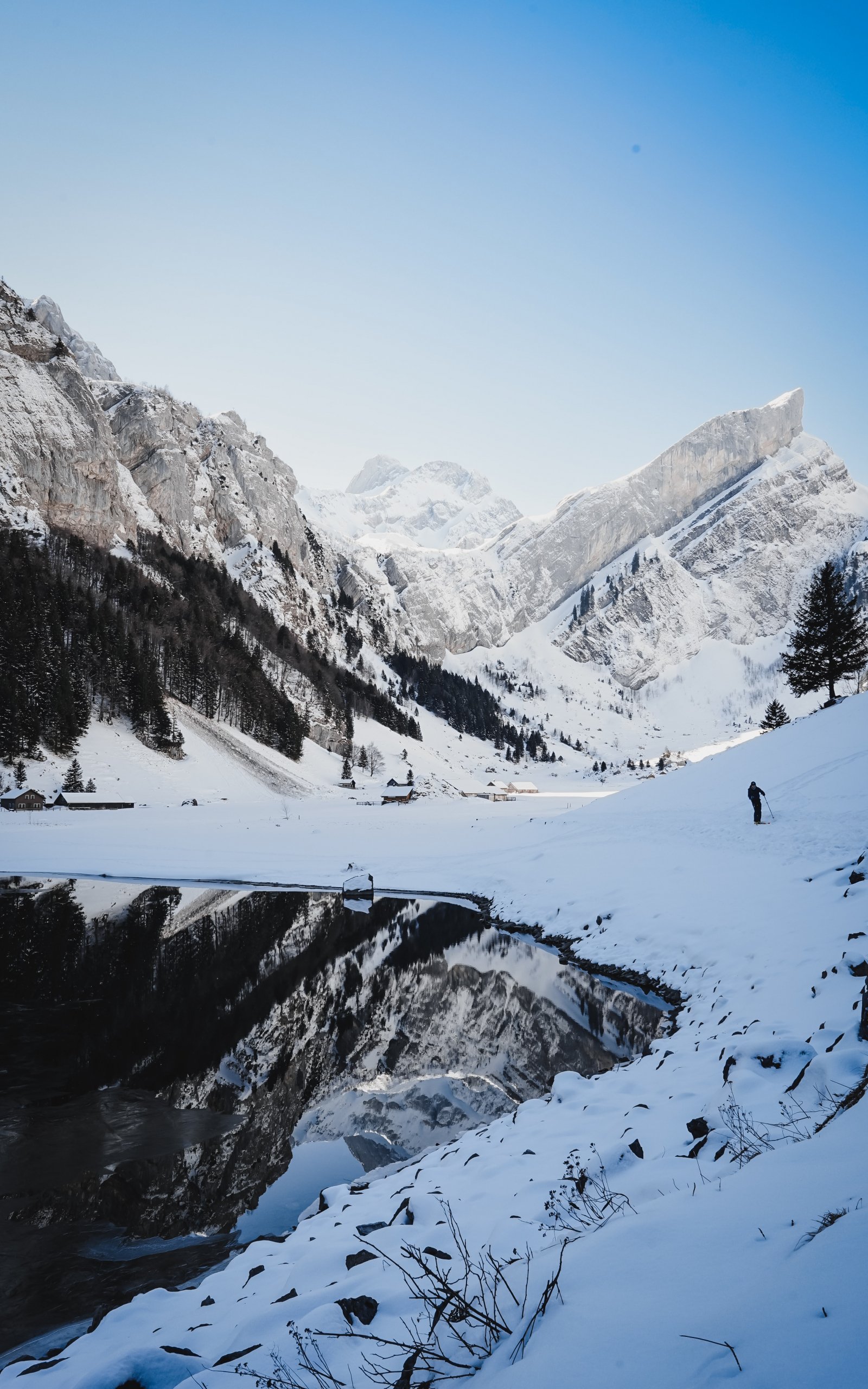 Обои: Зеальпзее, Швенде, Швейцария, горы, лыжи - 1600x2560