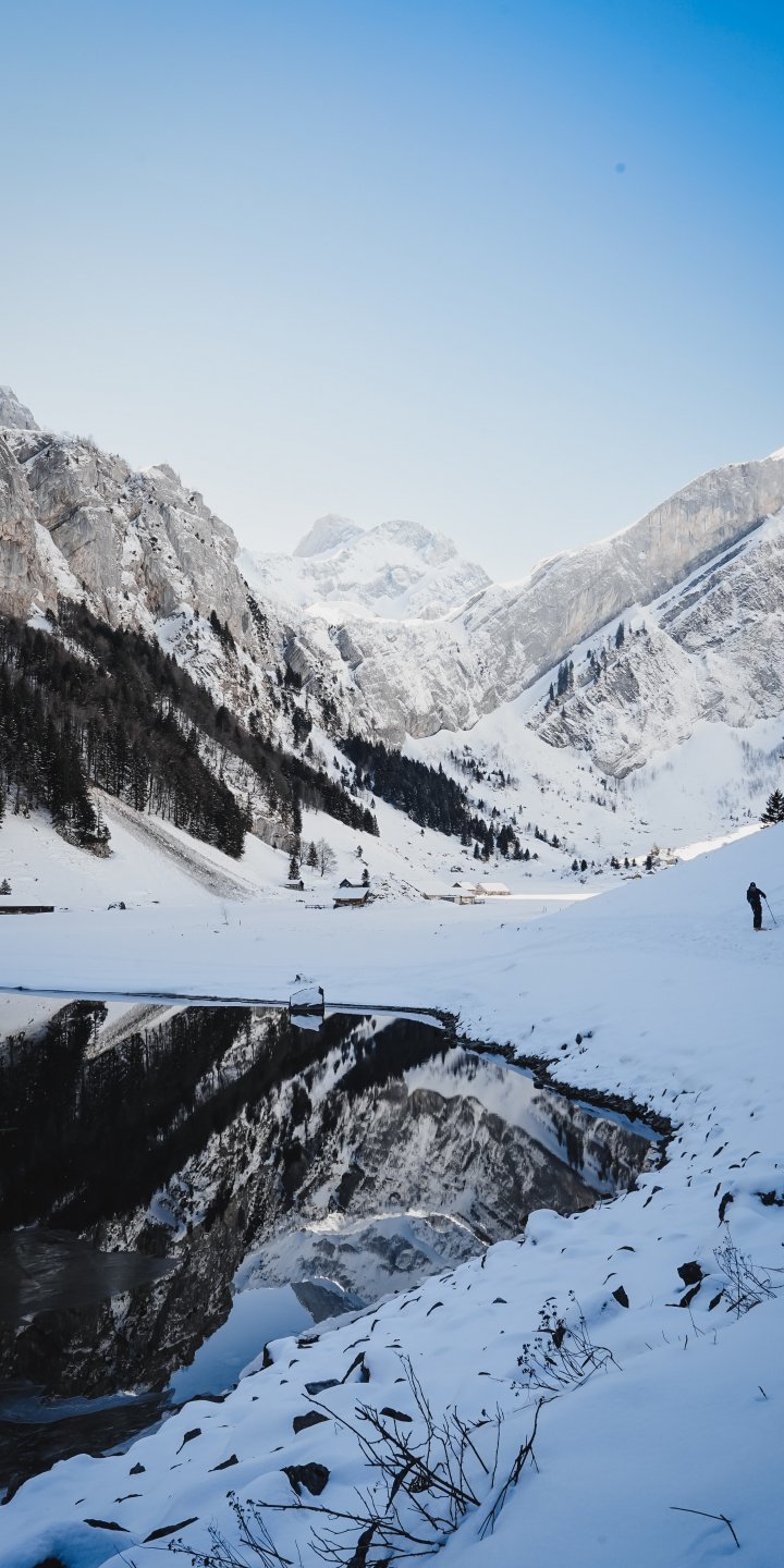 Обои: Зеальпзее, Швенде, Швейцария, горы, лыжи - 720x1440