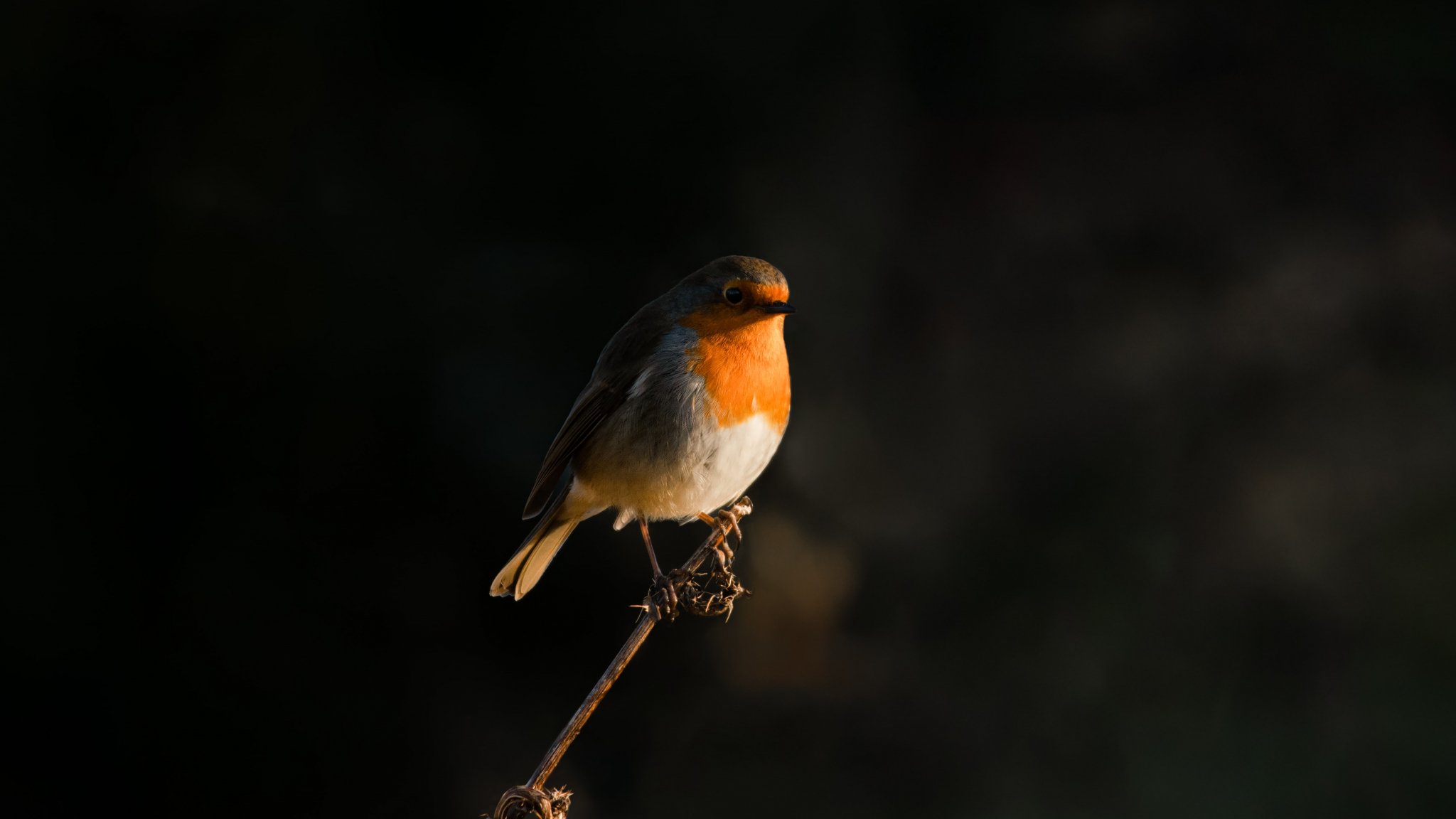 Обои: Нортумберленд, Великобритания, робин красногрудый, птичка - 2048x1152