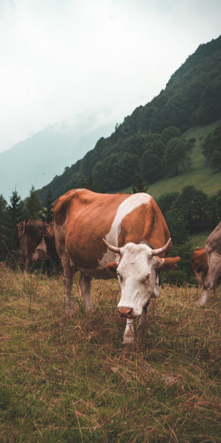 Обои: корова, млекопитающие, пастбище - 720x1440