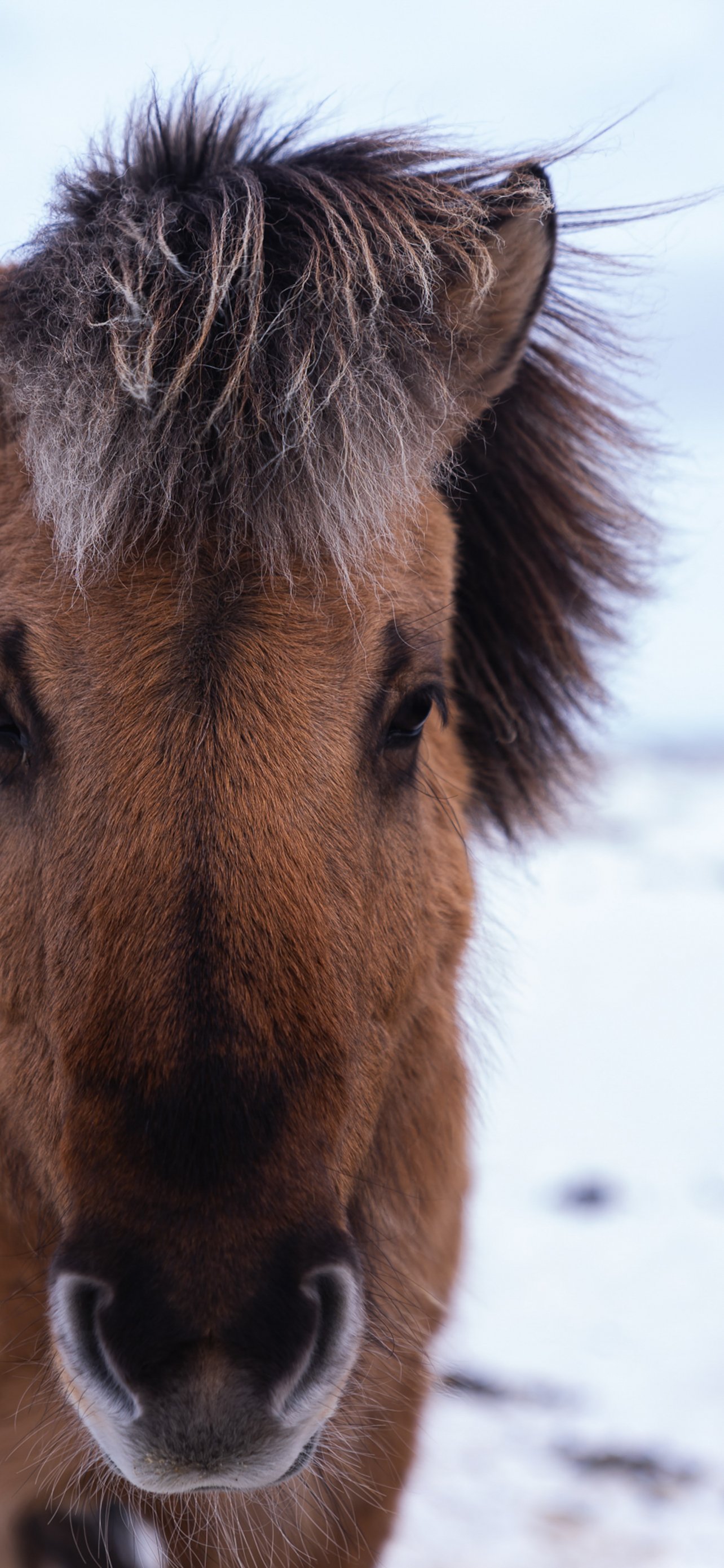 Обои: Вик-и-Мирдал, Вик-и-Мирдал, Исландия, зима, лошадь - 1284x2778