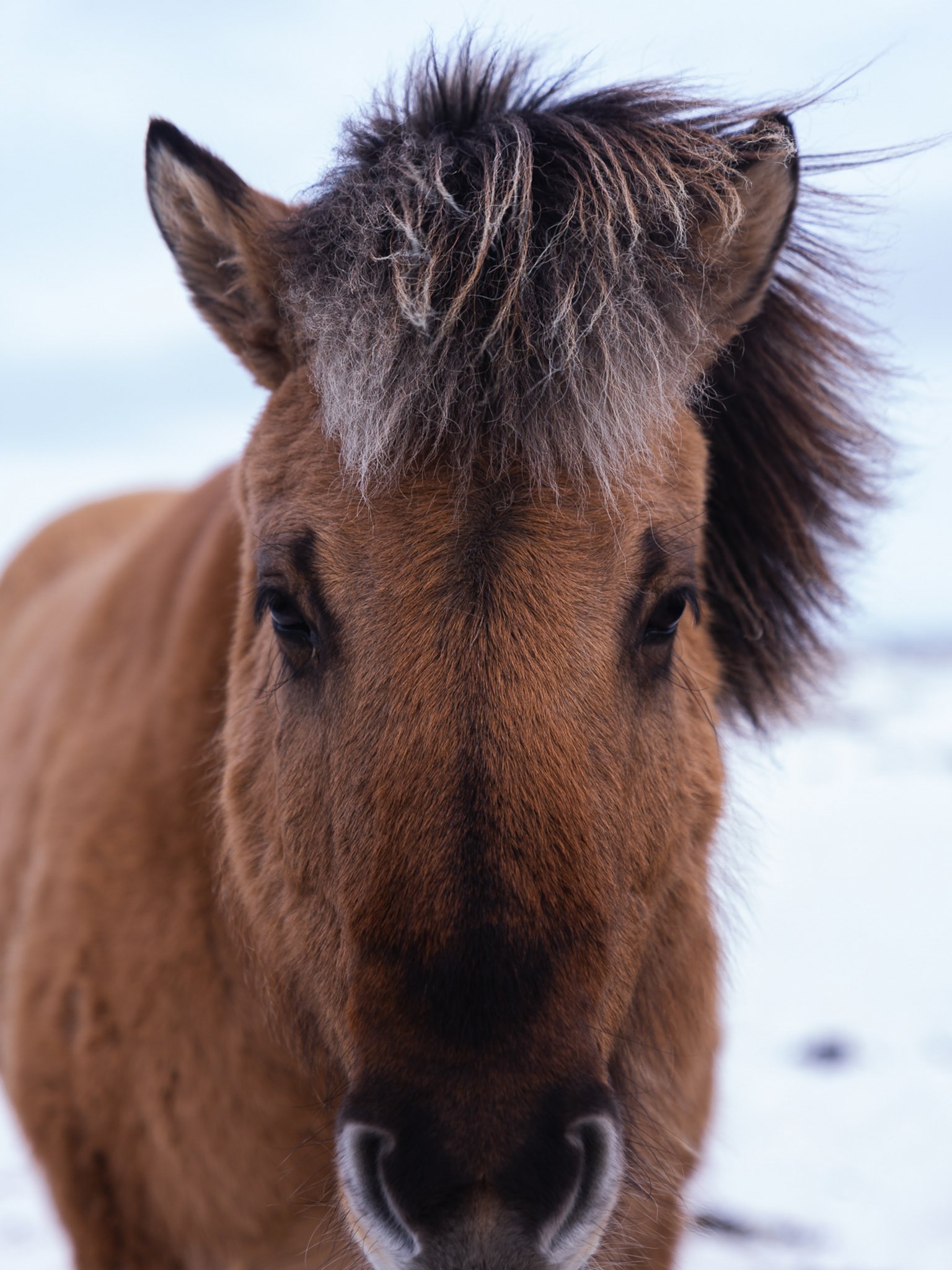 Обои: Вик-и-Мирдал, Вик-и-Мирдал, Исландия, зима, лошадь - 1536x2048