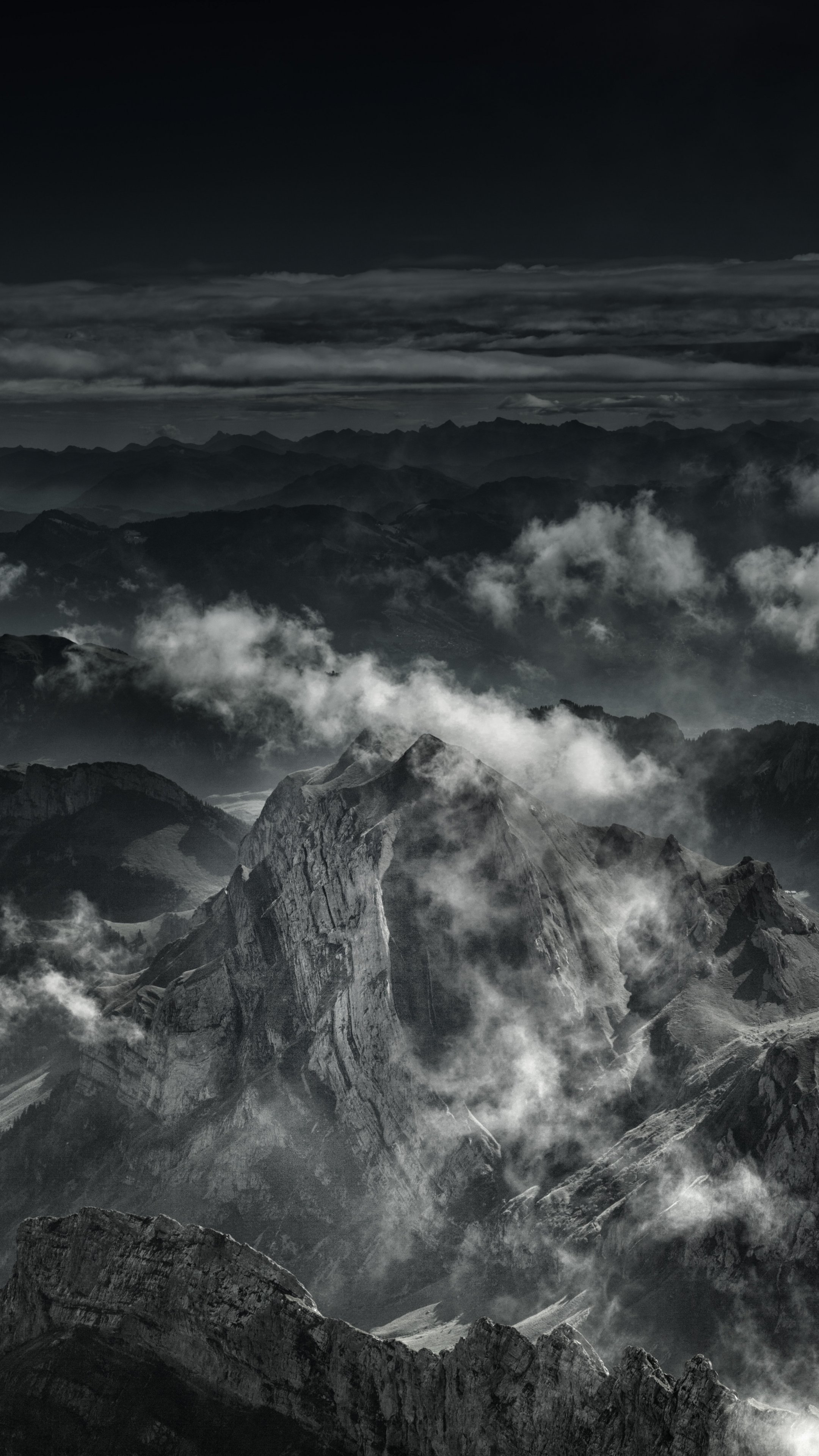 Обои: гора, черное и белое - 2160x3840