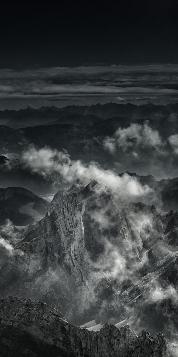 Обои: гора, черное и белое - 720x1440