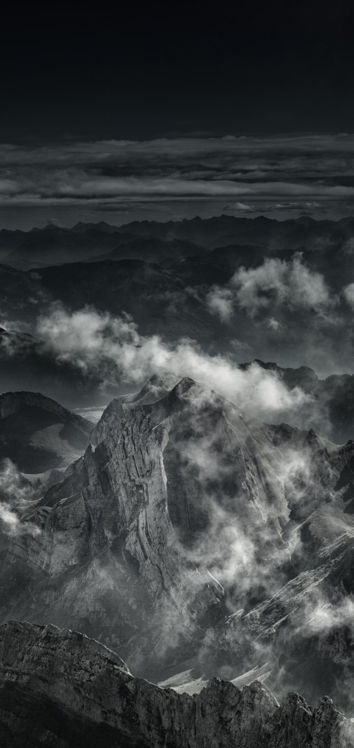 Обои: гора, черное и белое - 720x1520