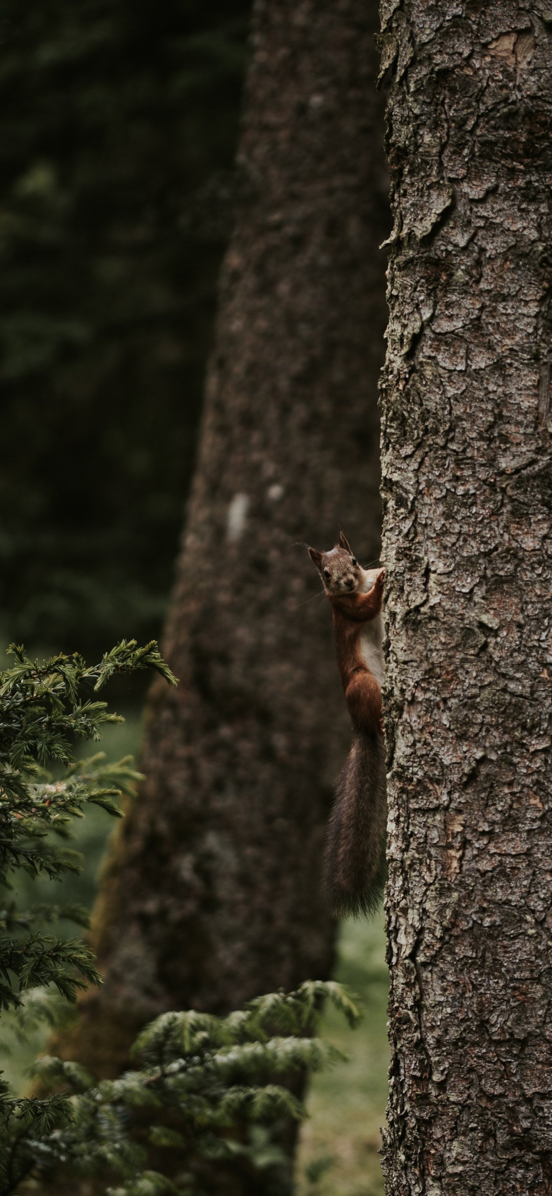 Обои: растение, ствол дерева, белка, грызун - 1080x2340