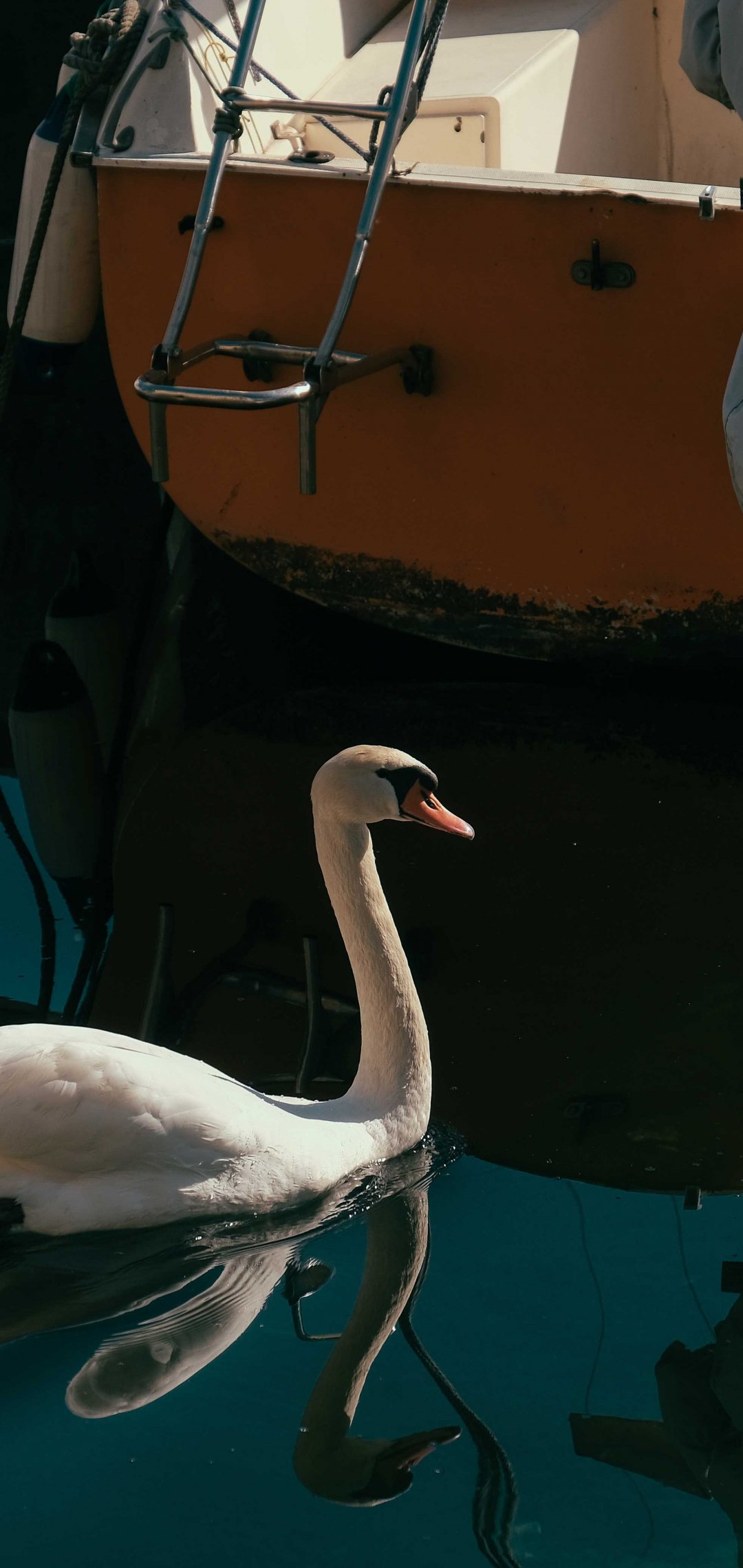 Обои: лебедь, озеро, водоплавающая птица - 1080x2280