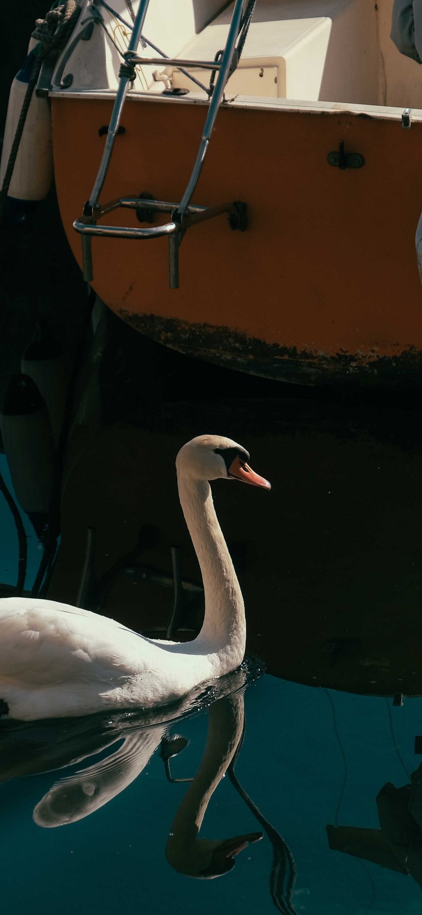 Обои: лебедь, озеро, водоплавающая птица - 828x1792