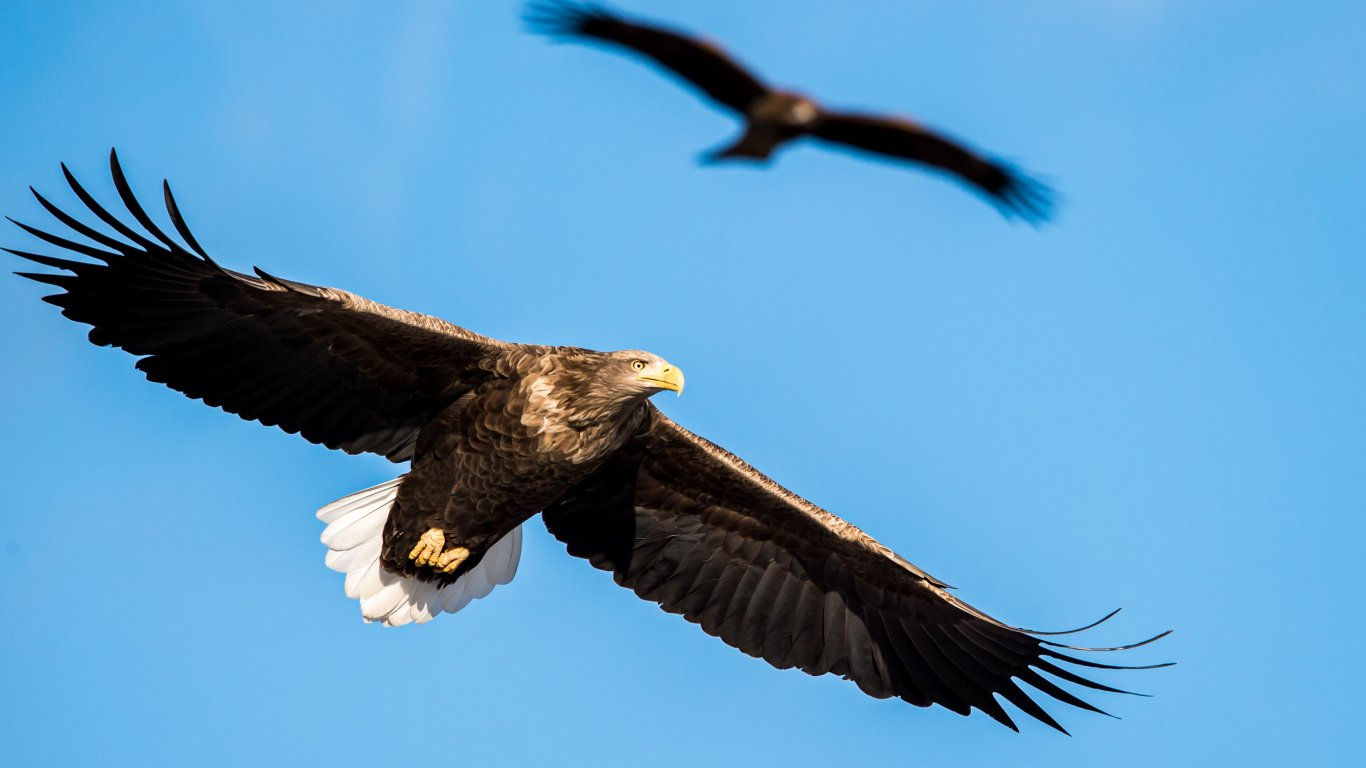 Обои: Куширу, птица, полет - 1366x768