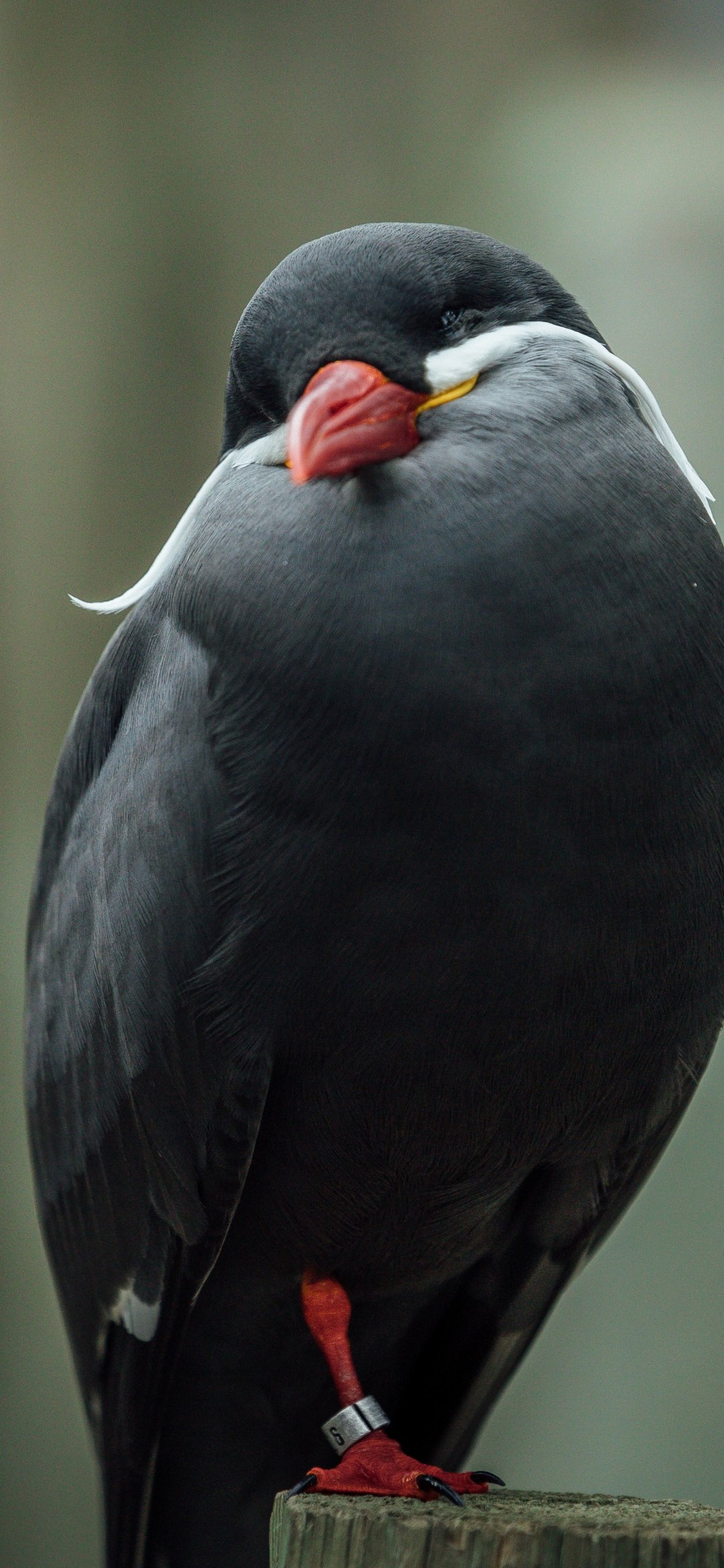 Обои: птица, красный клюв, черная птица - 1080x2340