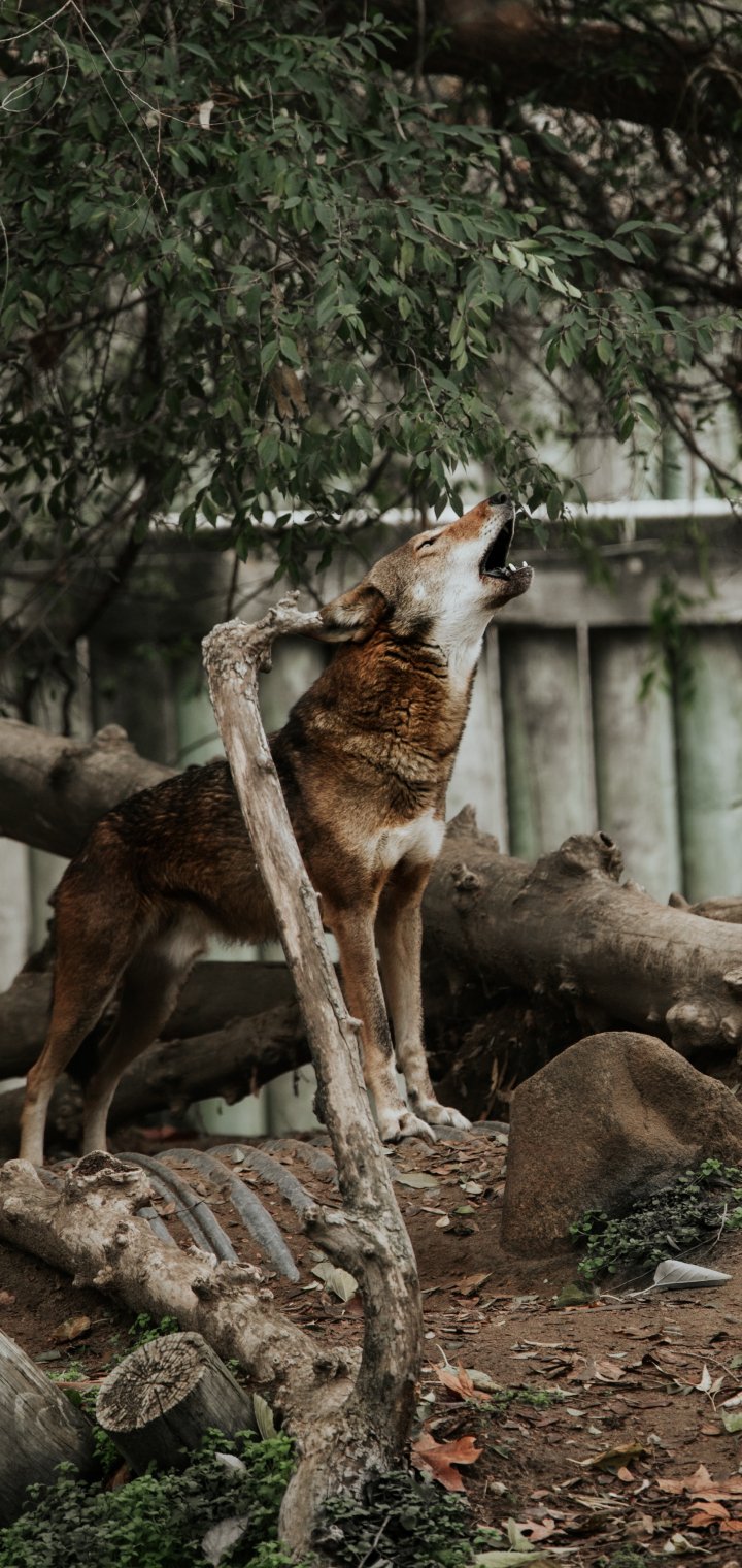 Обои: млекопитающее, красный волк, зоопарк - 720x1520