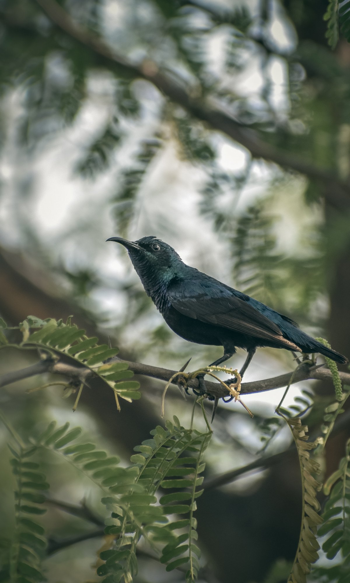 Обои: прекрасная природа, черная птица, на ветке - 1200x2000