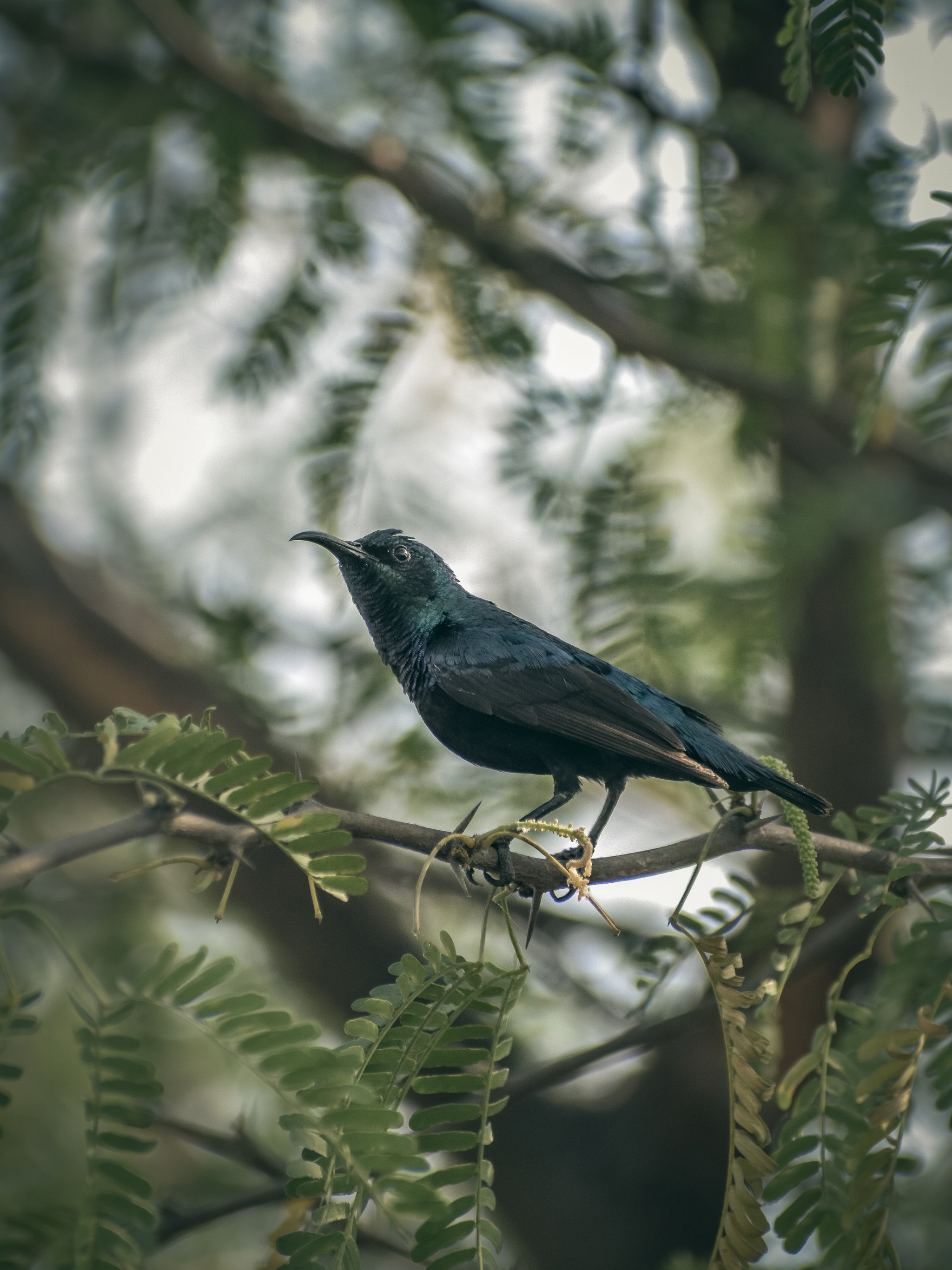 Обои: прекрасная природа, черная птица, на ветке - 2048x2732