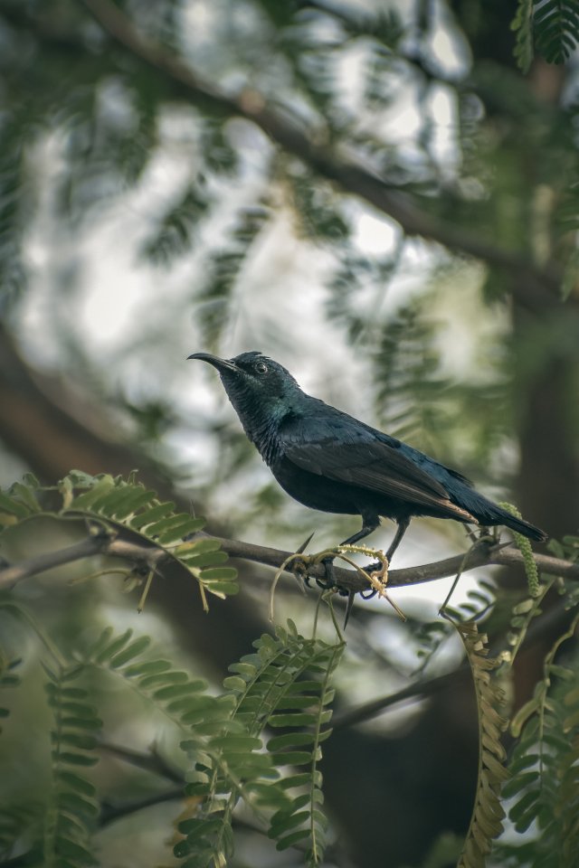 Обои: прекрасная природа, черная птица, на ветке - 640x960