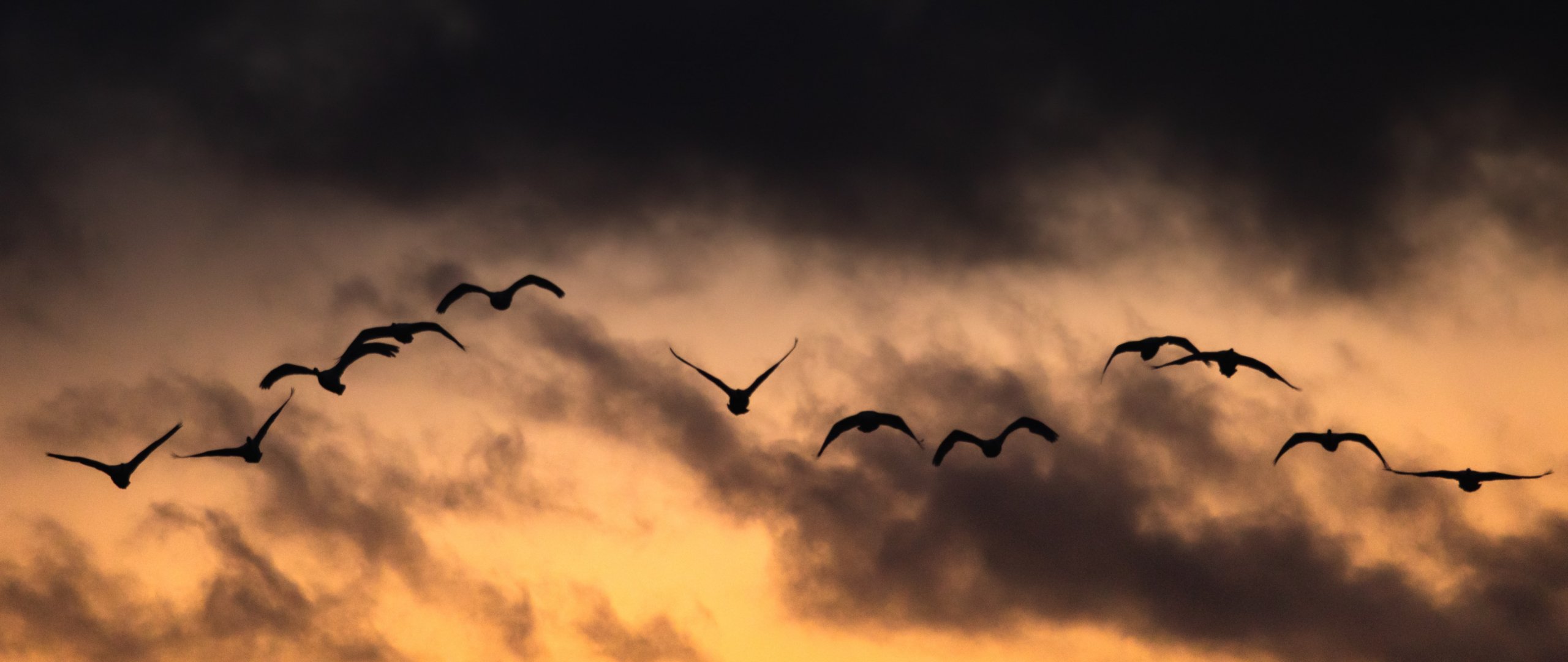 Обои: Польша, летящие птицы, восход, закат - 2560x1080