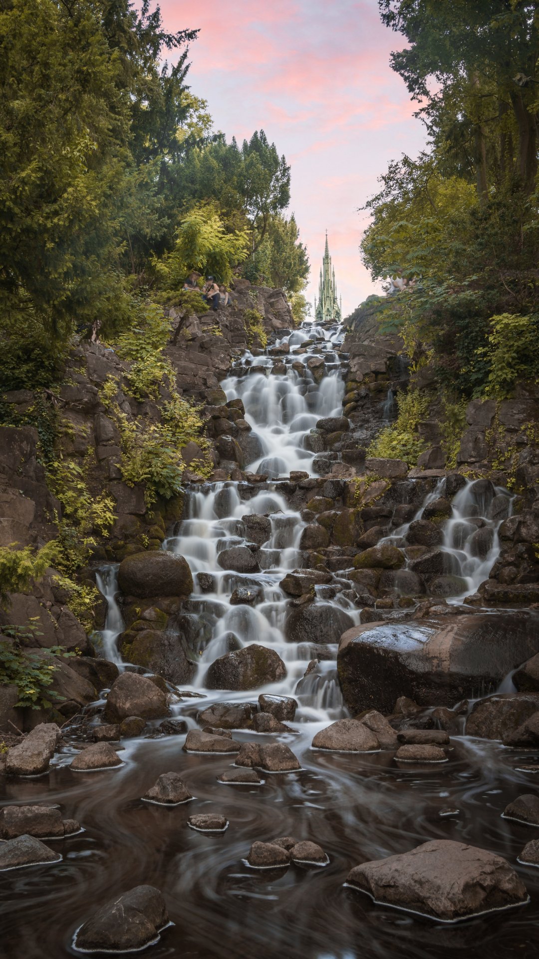 Обои: водопад, сад, ручей - 1080x1920