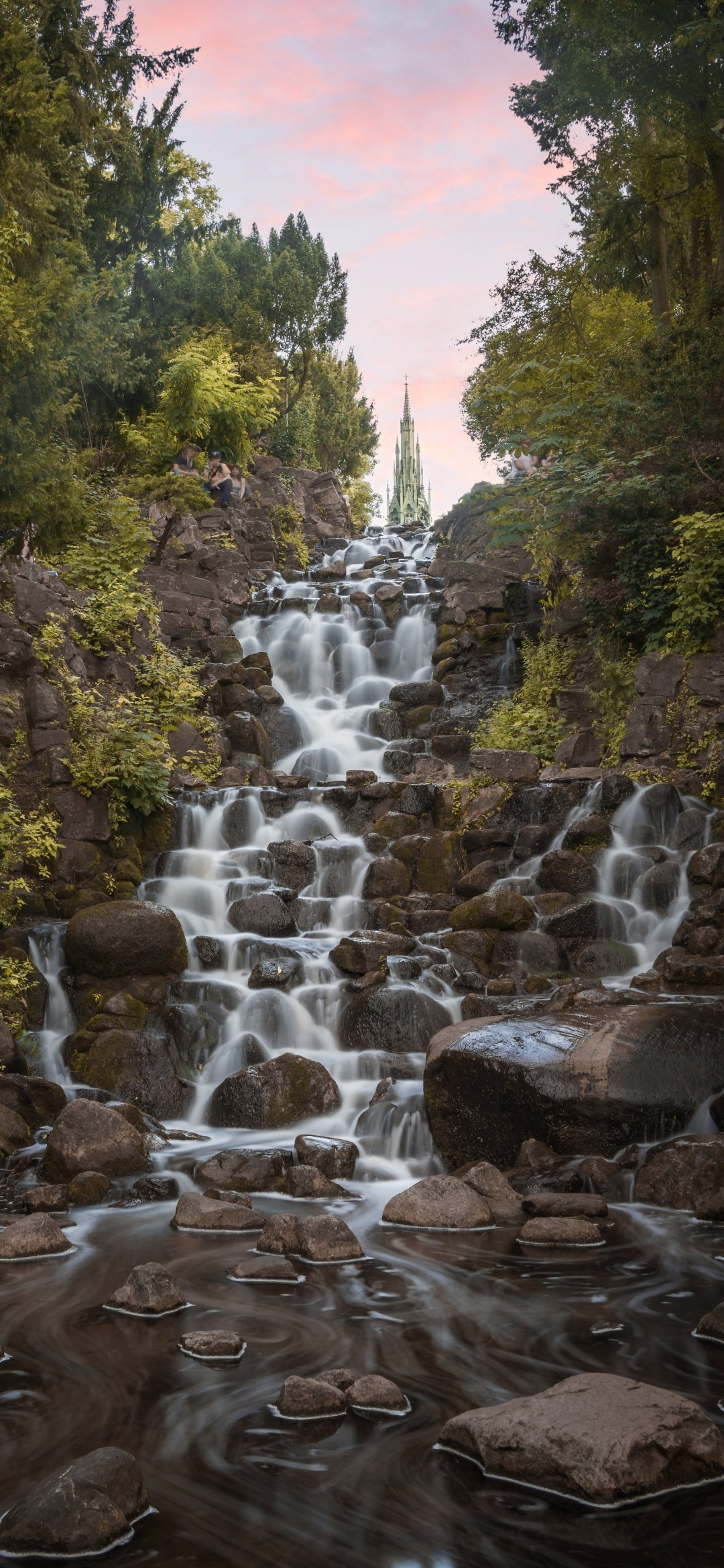 Обои: водопад, сад, ручей - 1080x2340
