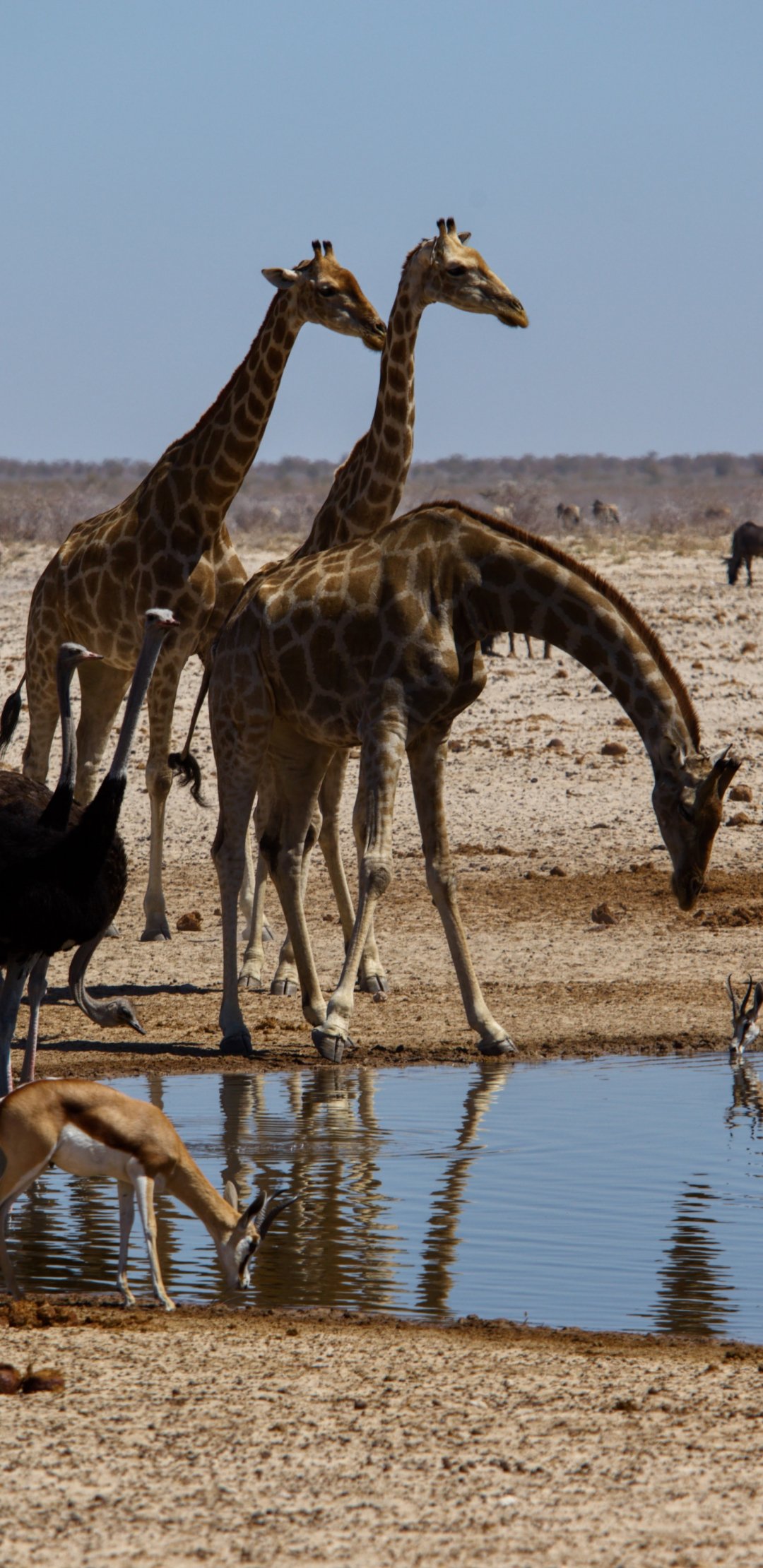 Обои: Этоша, Намибия, дикая природа, жирафы - 1080x2220