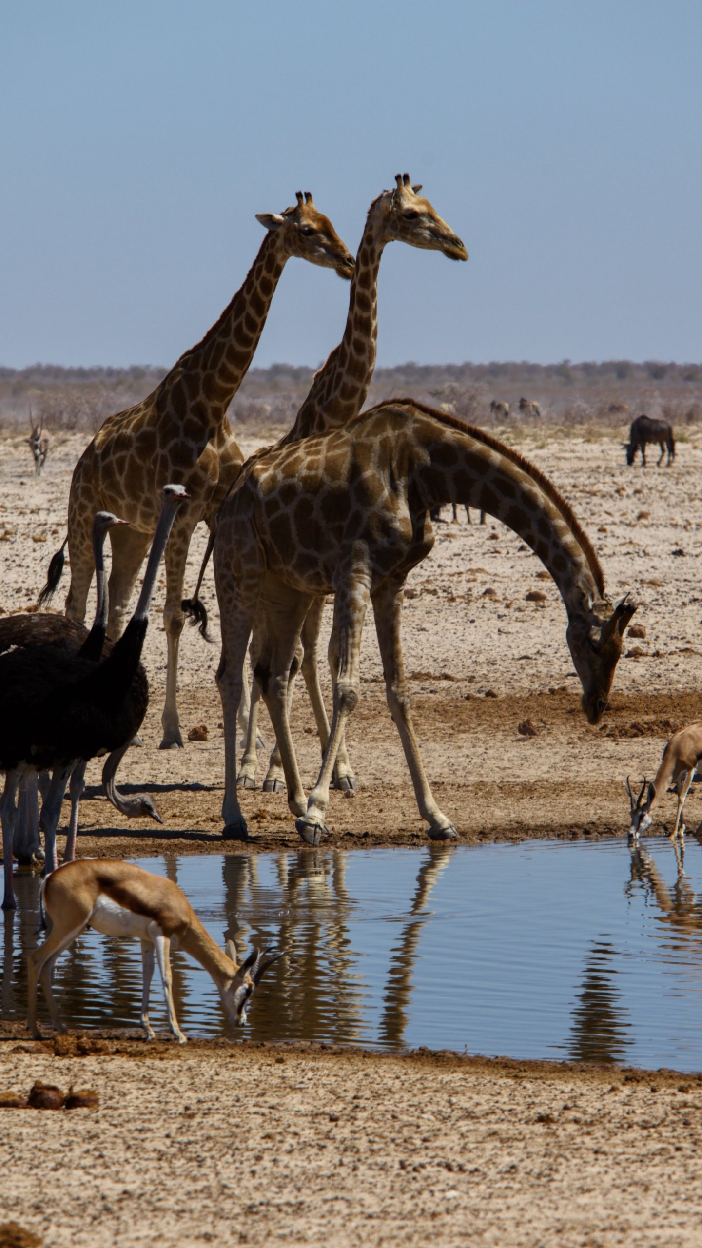 Обои: Этоша, Намибия, дикая природа, жирафы - 1440x2560