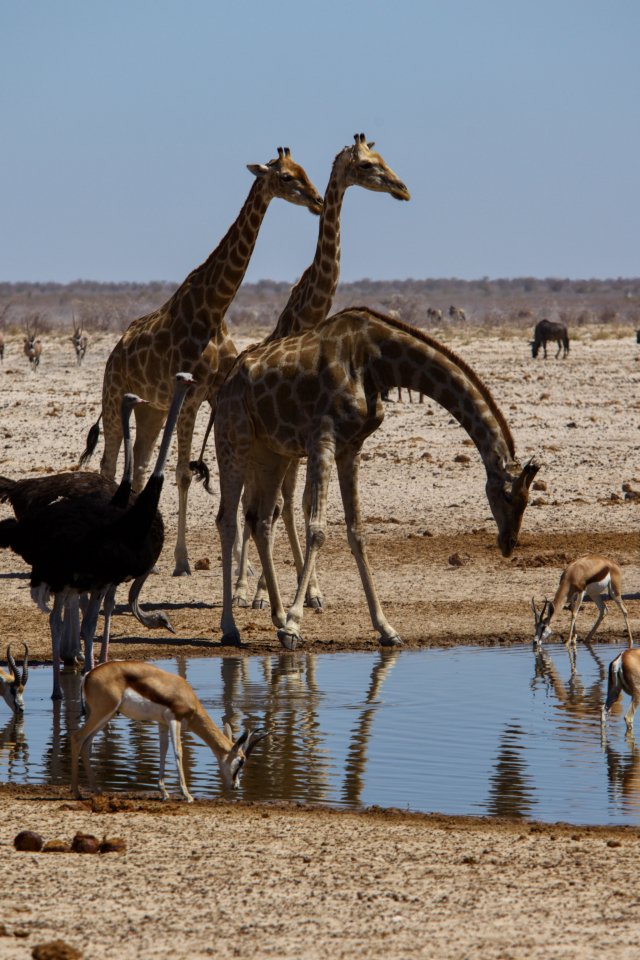 Обои: Этоша, Намибия, дикая природа, жирафы - 640x960