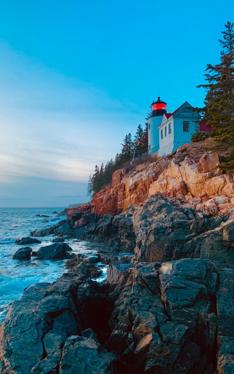 Обои: Басс-Харбор, Тремонт, Мэн, США, утес, море - 800x1280