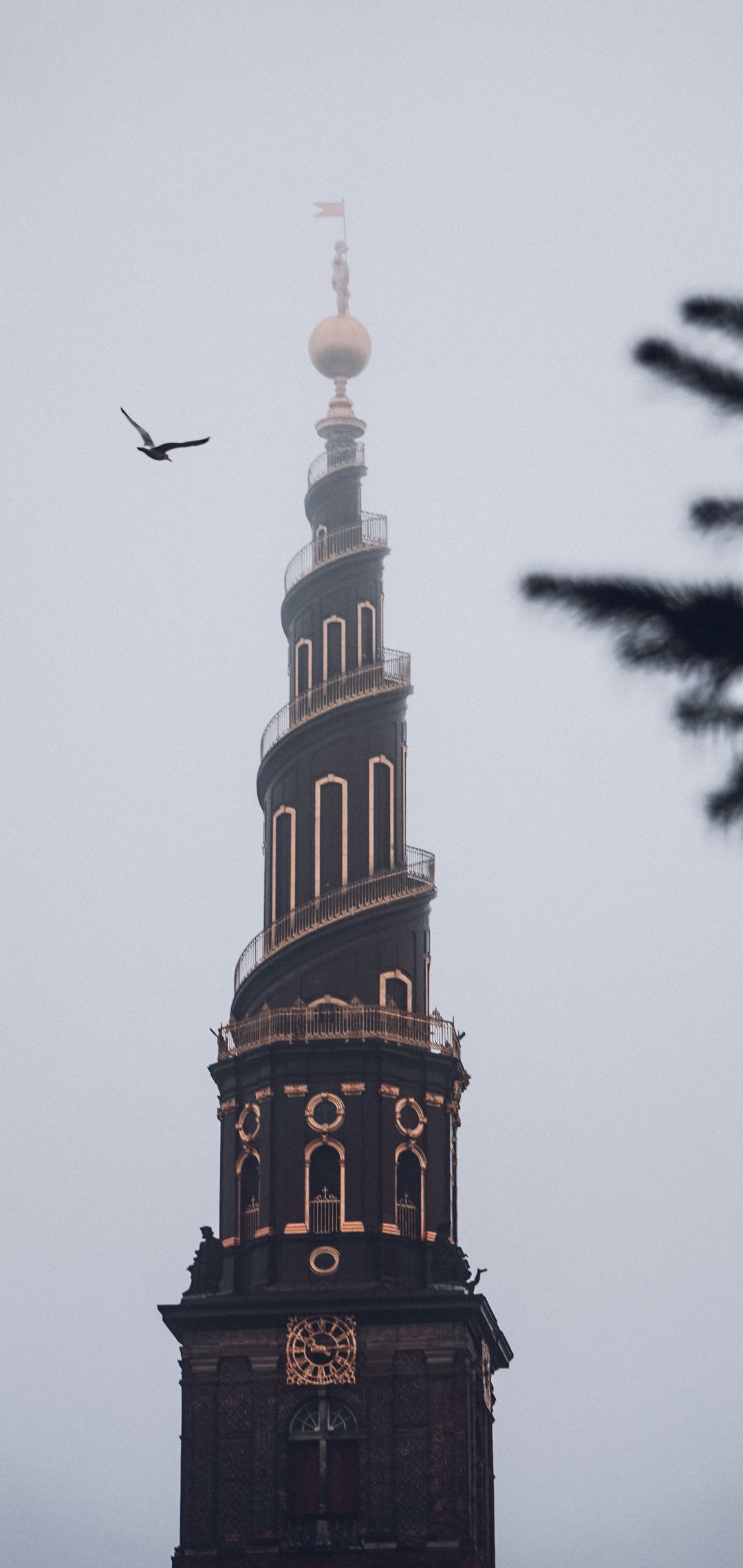 Обои: Копенгаген, Копенгаген, Дания, башня, туман - 1080x2280
