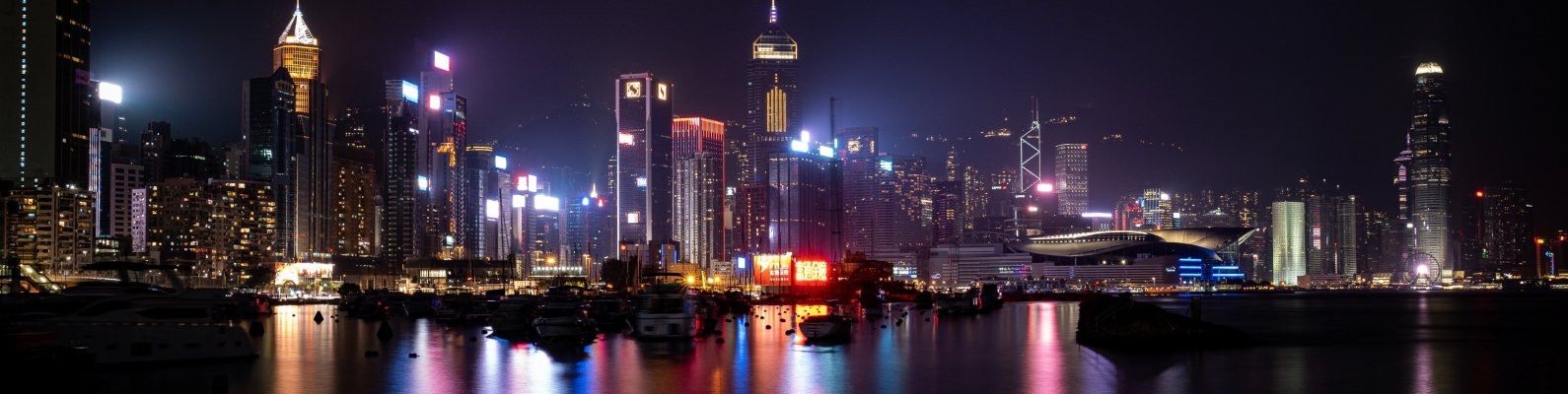 Обои: Гонконг, ночной город - 1590x400