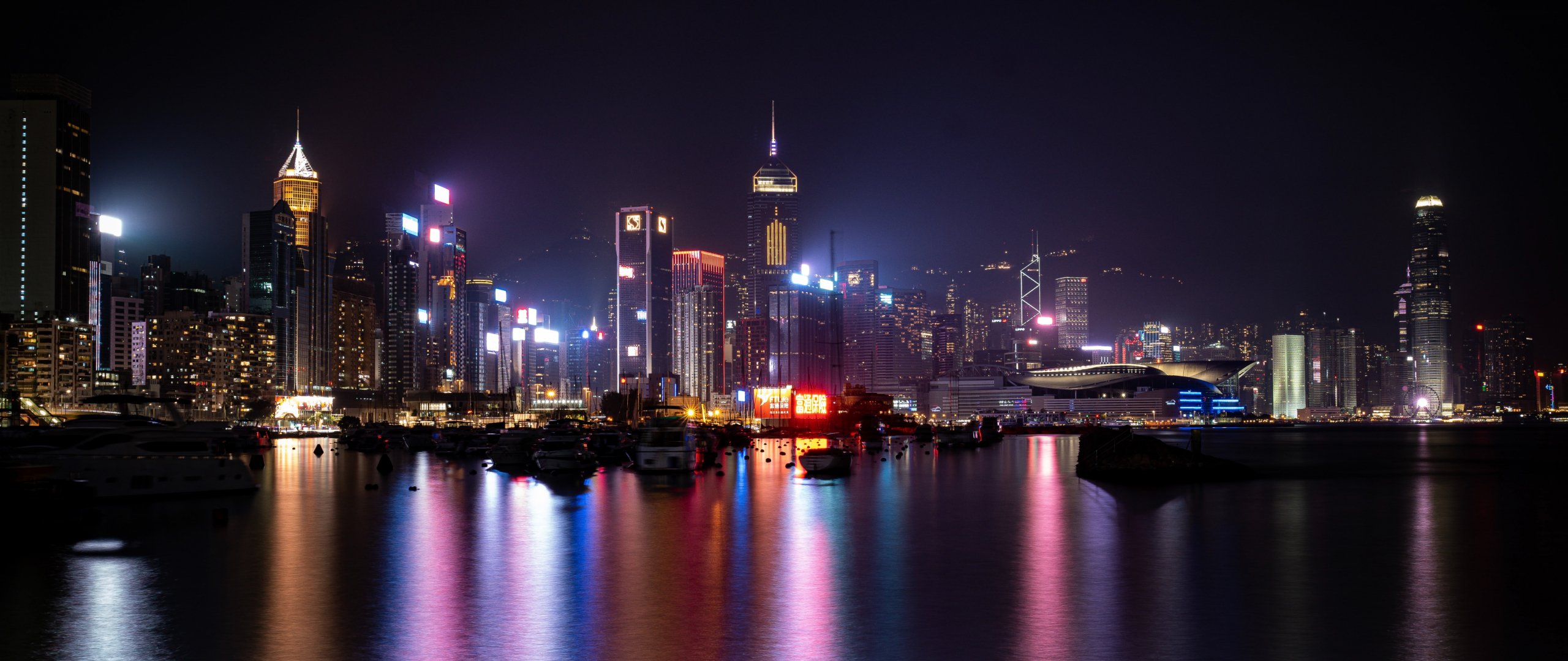 Обои: Гонконг, ночной город - 2560x1080