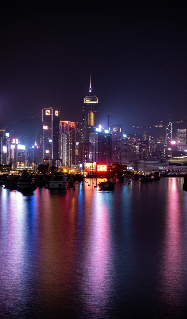 Обои: Гонконг, ночной город - 600x1024