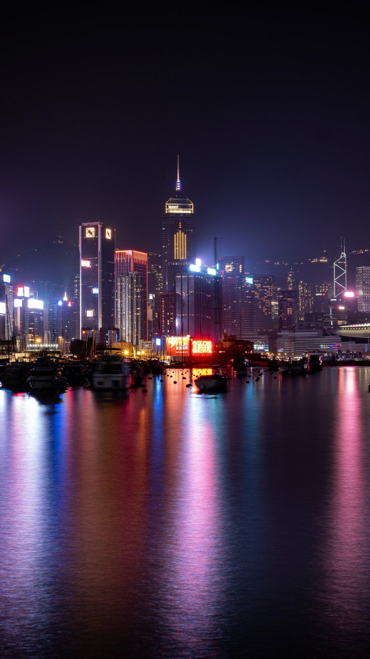 Обои: Гонконг, ночной город - 750x1334