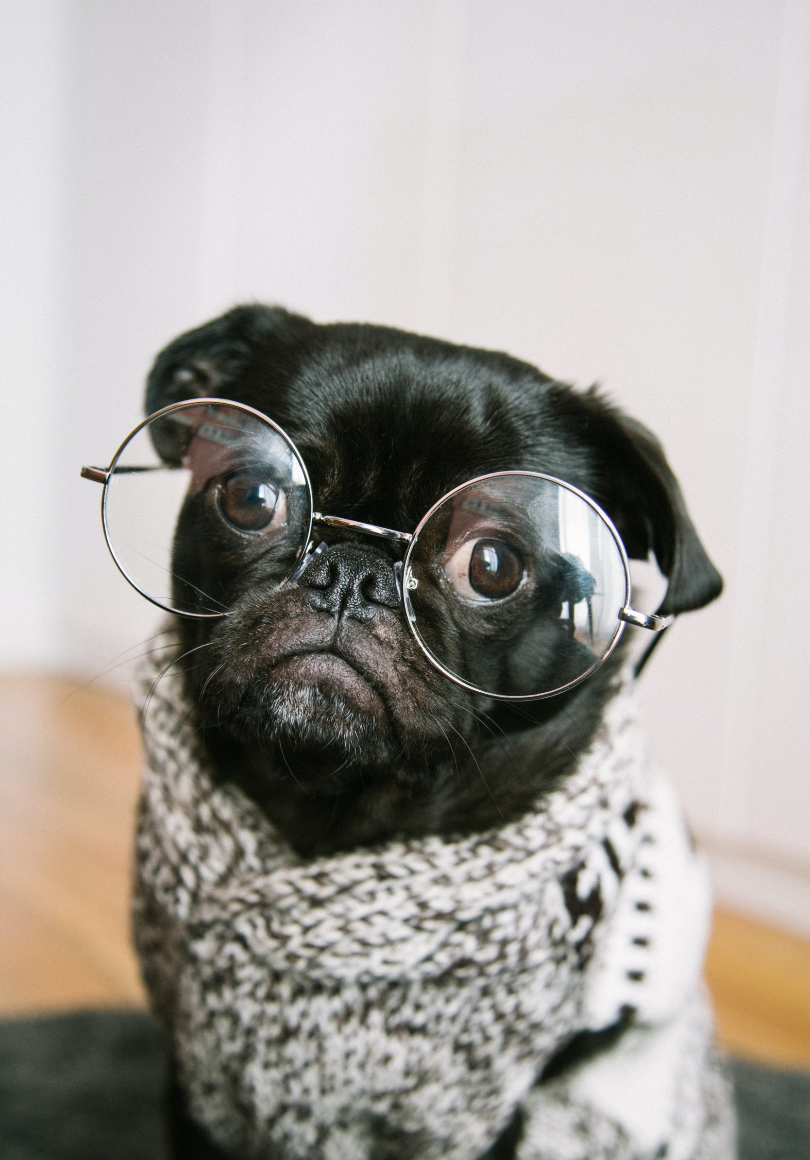 Обои: мопс, очки, домашний питомец - 1668x2388