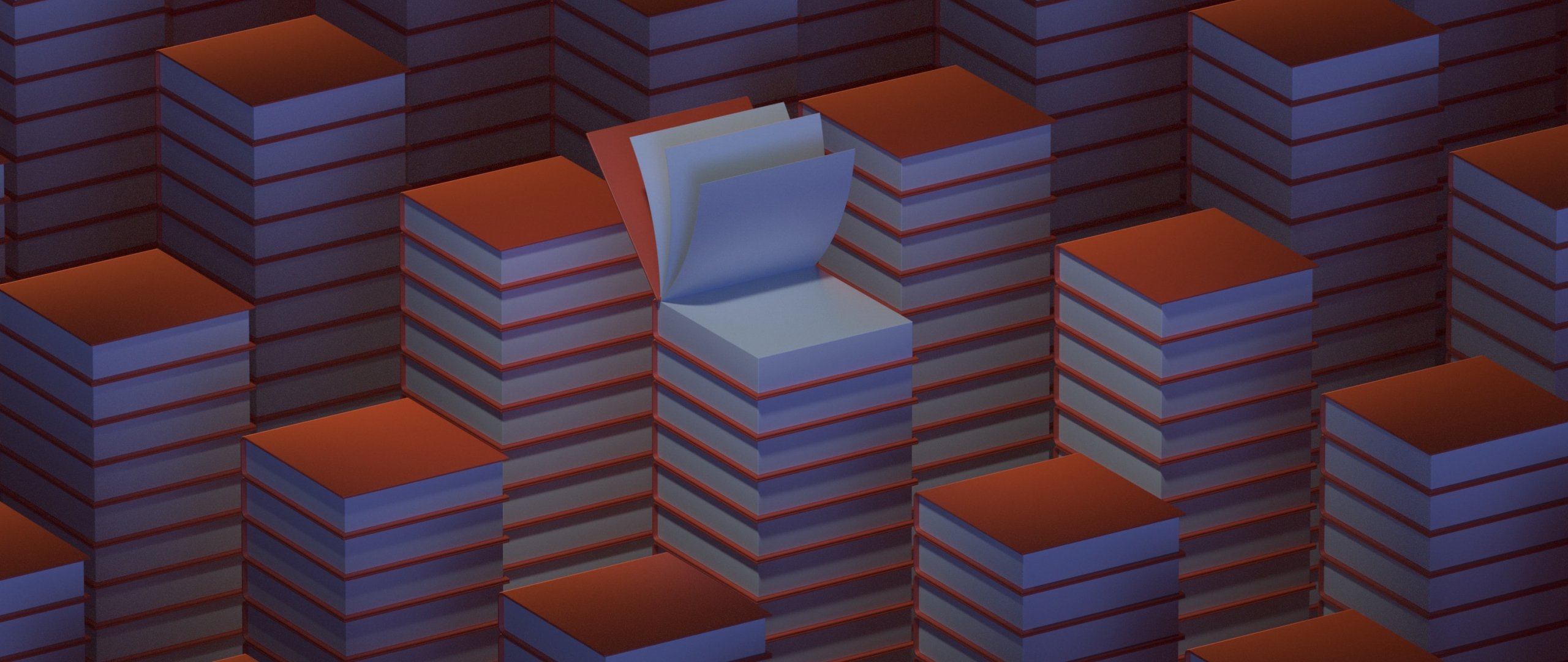Обои: стопки книг, 3D моделирование - 2560x1080