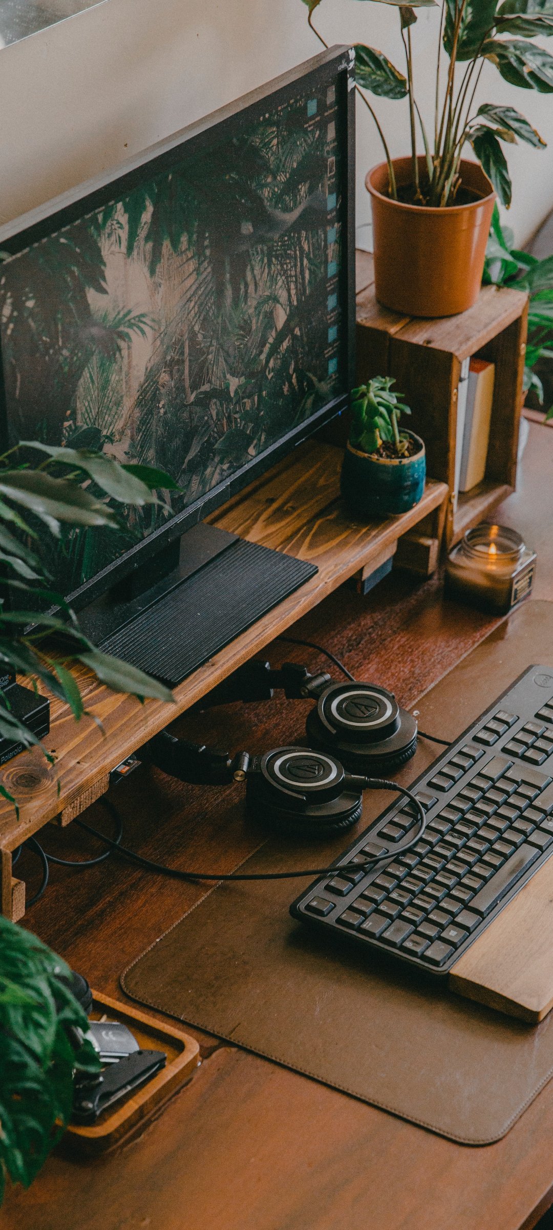 Обои: компьютер, клавиатура, растения - 1080x2400