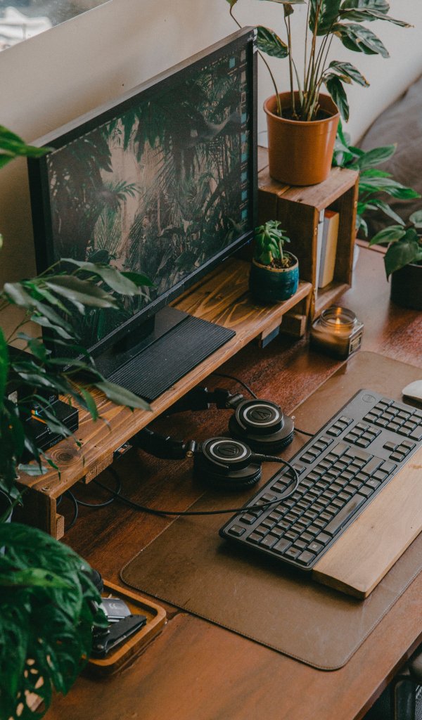 Обои: компьютер, клавиатура, растения - 600x1024