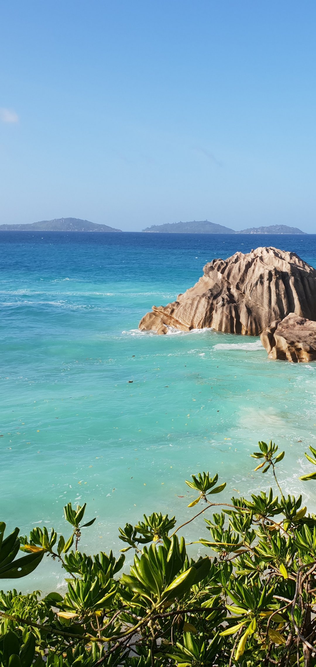 Обои: Ла-Диг, Сейшелы, море, солнце, пальмы - 1080x2280