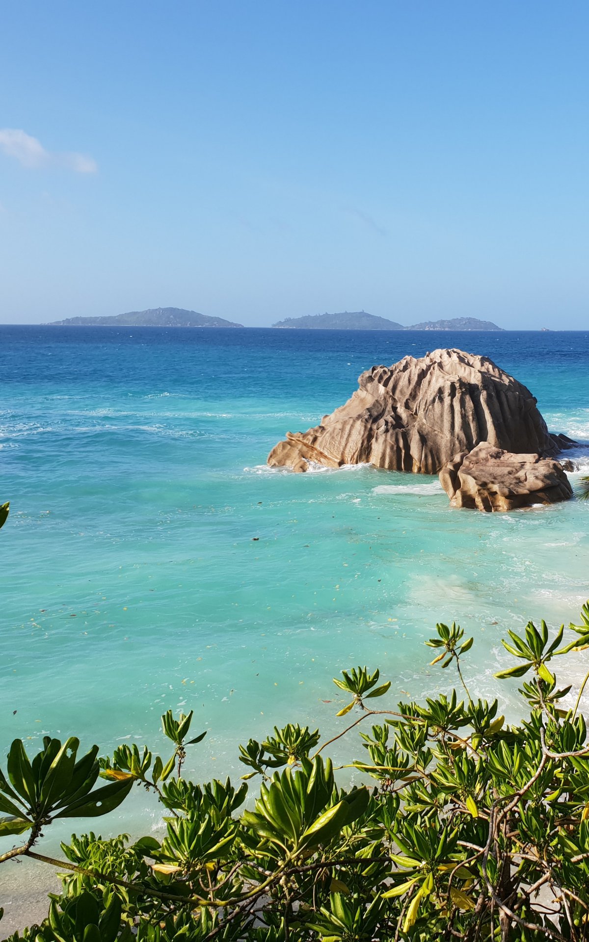 Обои: Ла-Диг, Сейшелы, море, солнце, пальмы - 1200x1920