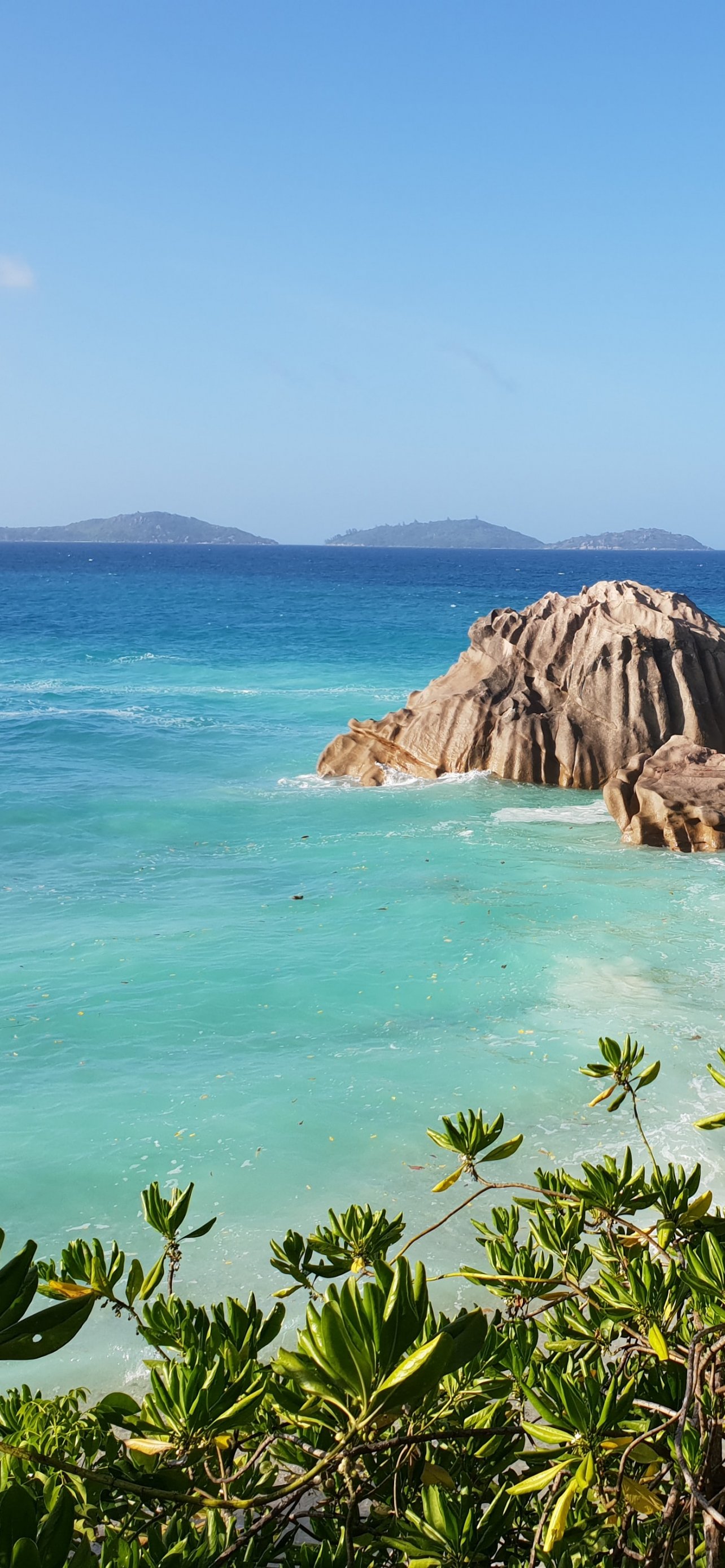 Обои: Ла-Диг, Сейшелы, море, солнце, пальмы - 1284x2778