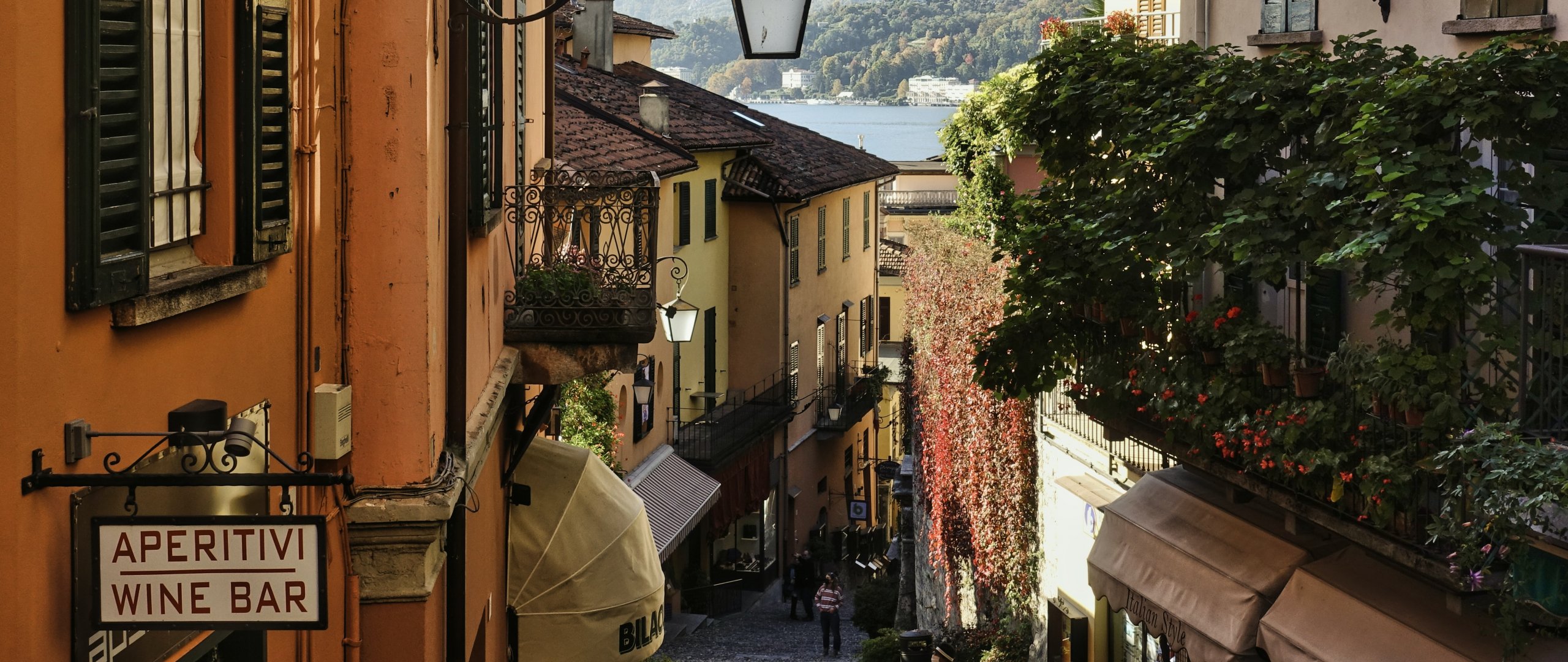 Обои: винный бар, проулок, город, дорога - 2560x1080