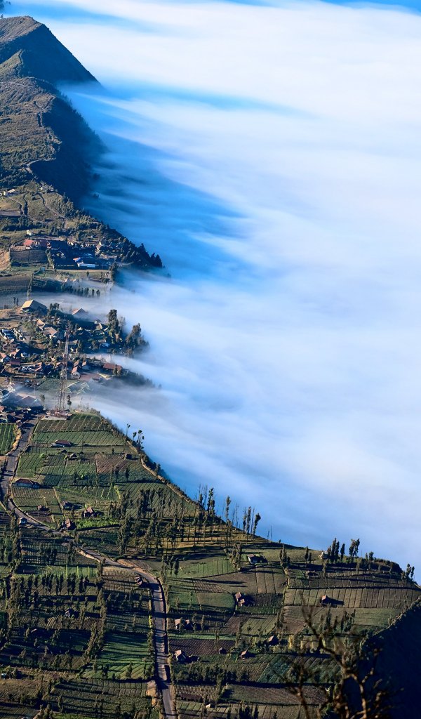 Обои: гора Бромо, Индонезия, туман - 600x1024