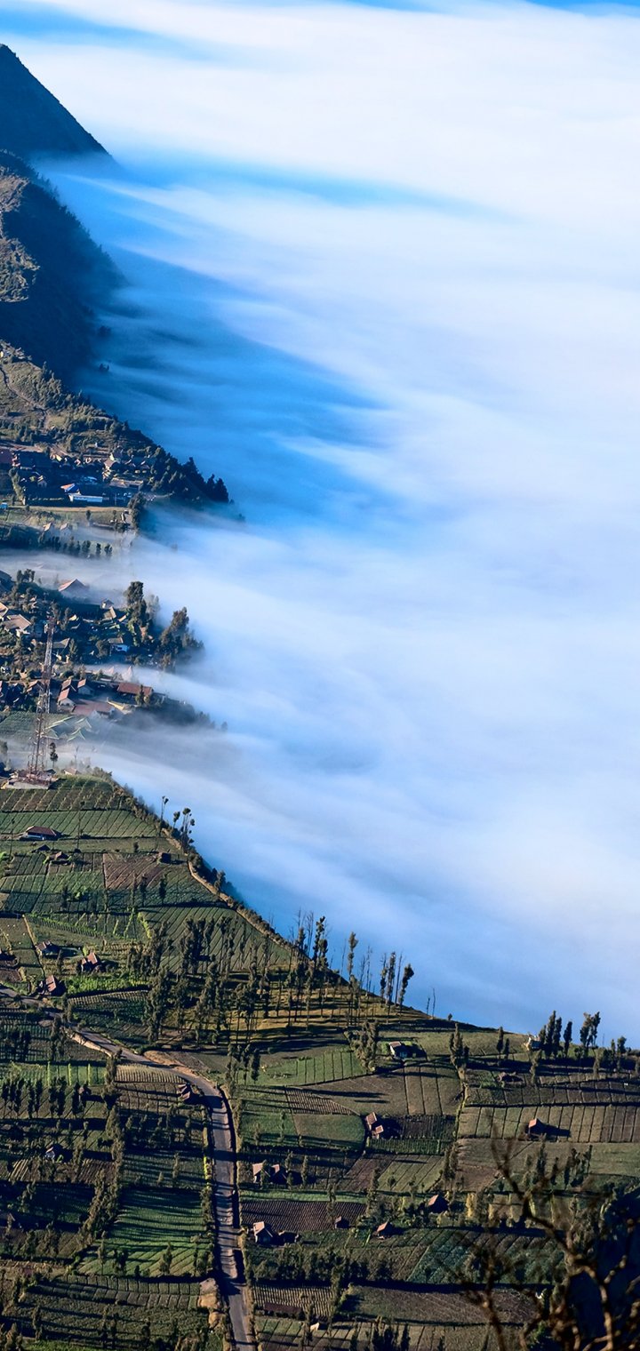 Обои: гора Бромо, Индонезия, туман - 720x1520