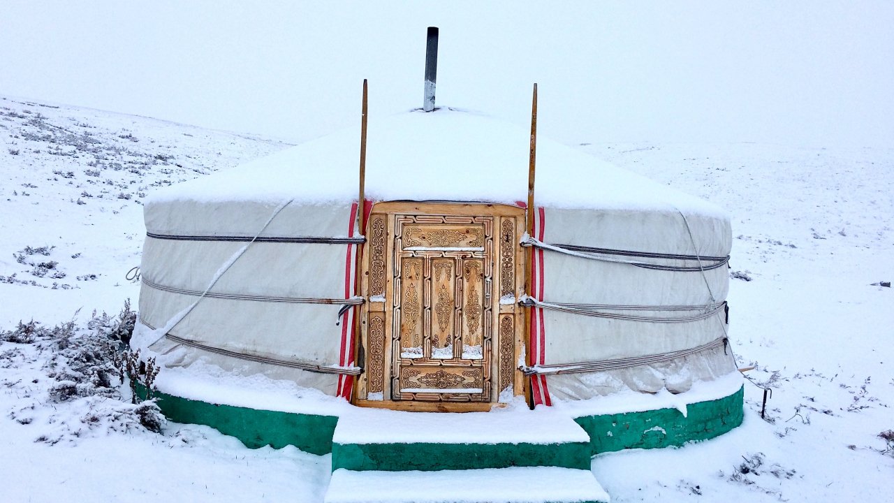 Обои: Монголия, палатка, зима - 1280x720