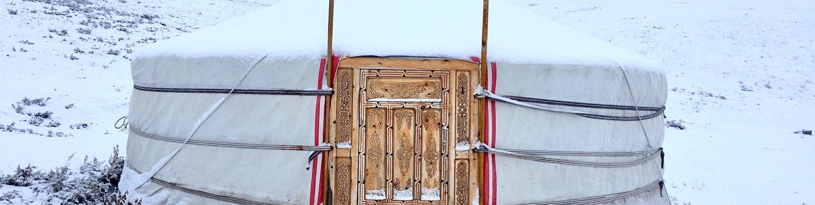 Обои: Монголия, палатка, зима - 1590x400