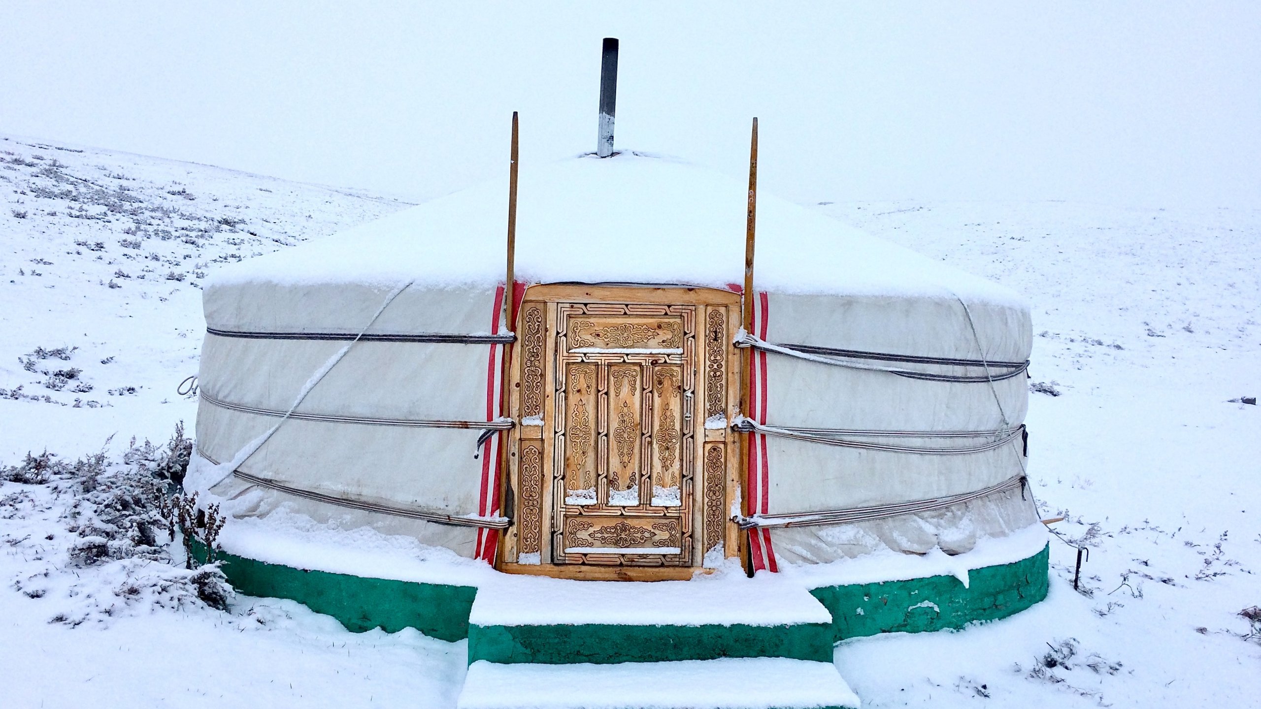 Обои: Монголия, палатка, зима - 2560x1440
