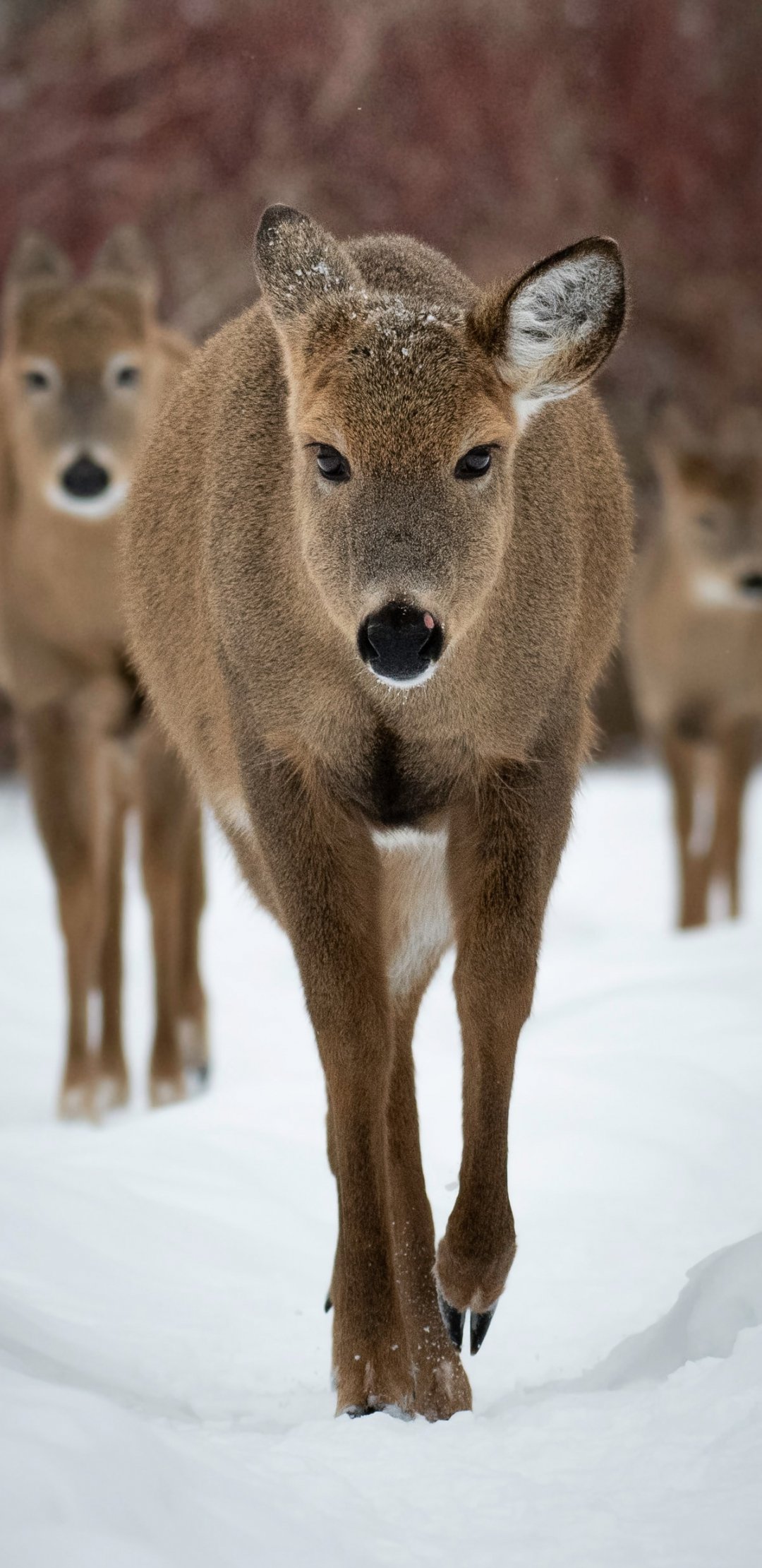 Обои: олени, лес, зима - 1080x2220
