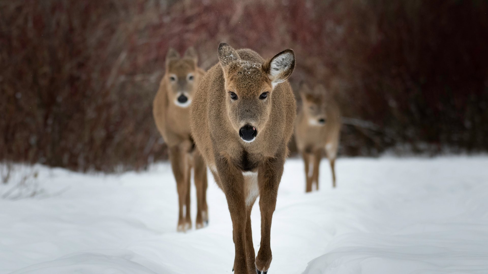 Обои: олени, лес, зима - 1920x1080