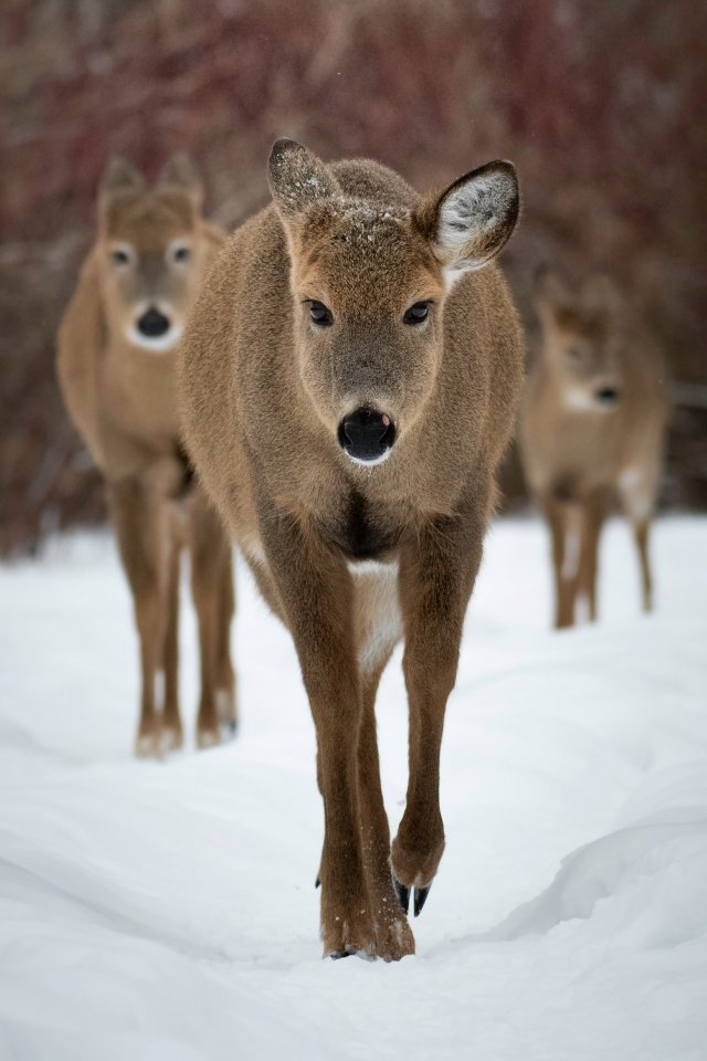 Обои: олени, лес, зима - 640x960