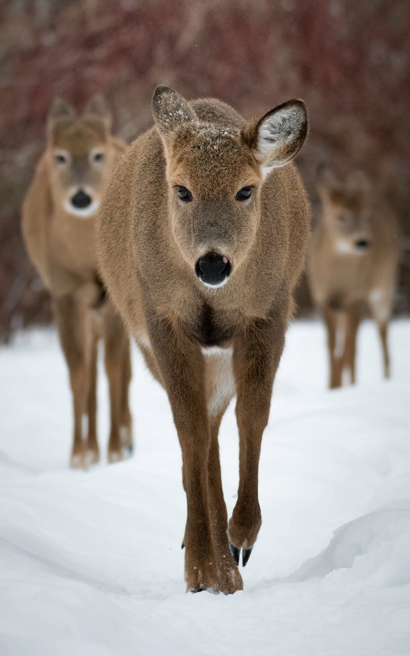 Обои: олени, лес, зима - 800x1280