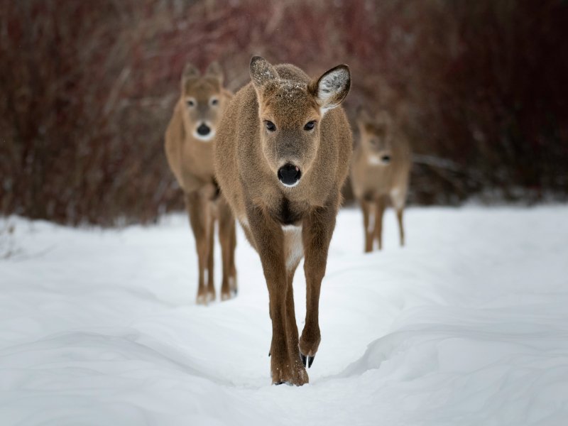 Обои: олени, лес, зима - 800x600