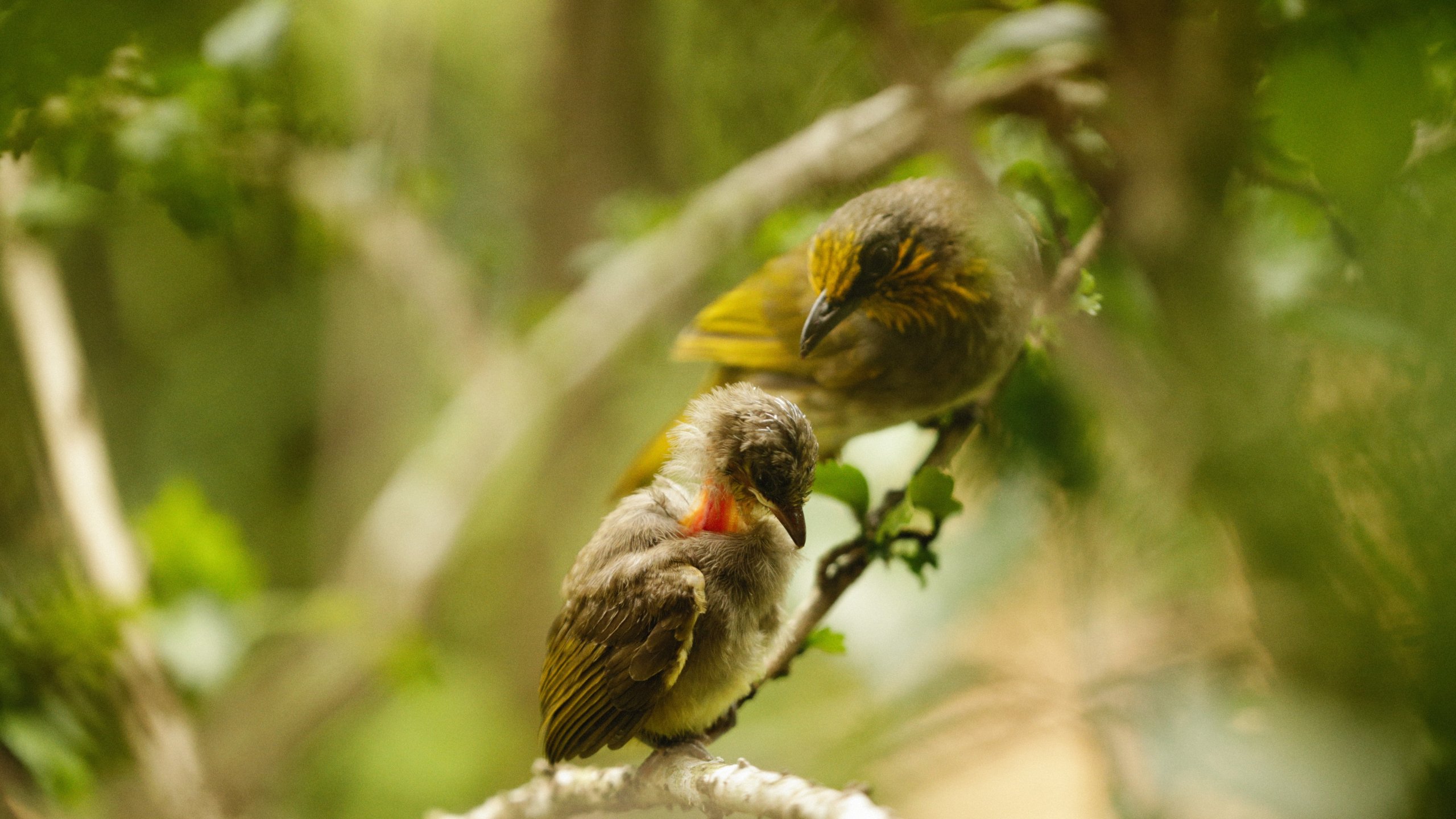 Обои: пара птиц, в лесу, в джунглях - 2560x1440