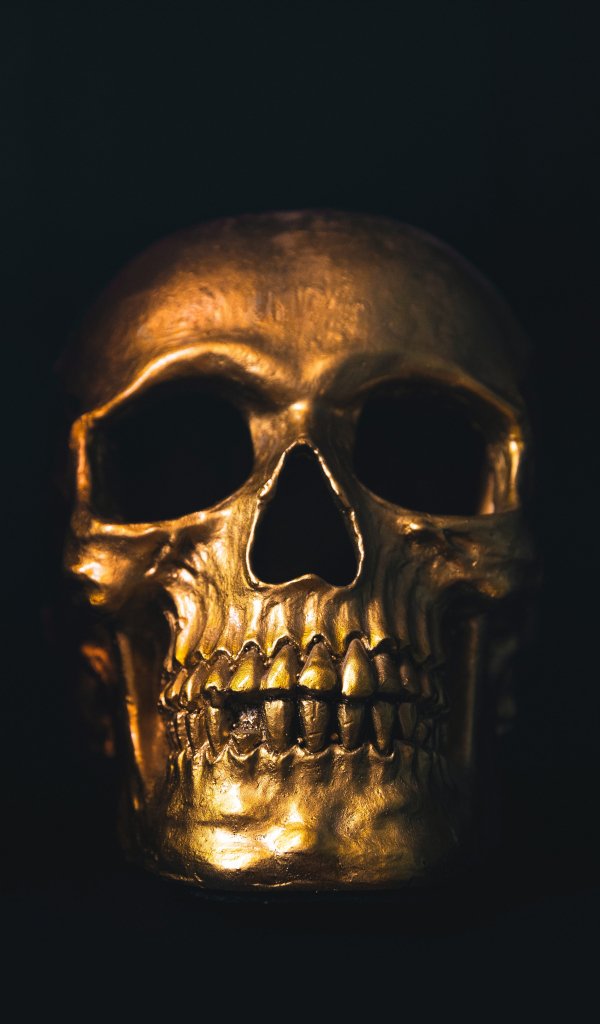 Обои: золотой череп, черные обои - 600x1024